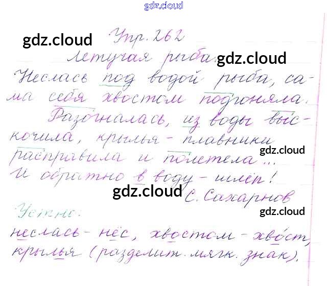 Ответ на задание 262 Учебник Русский язык за 3 (третий) класс Канакина, Горецкий Школа России 2013 Часть 1, 2