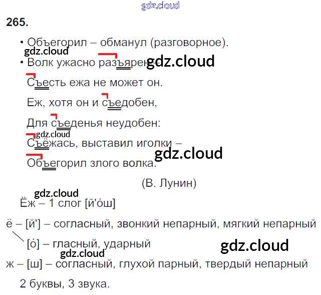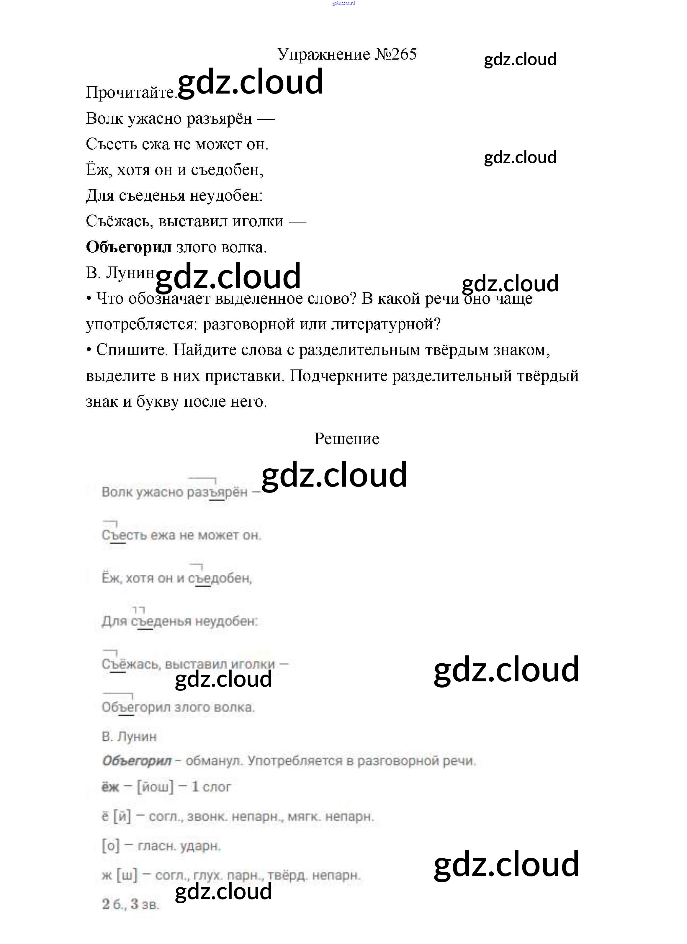 Ответ на задание 265 Учебник Русский язык за 3 (третий) класс Канакина, Горецкий Школа России 2013 Часть 1, 2
