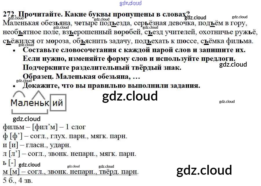 Ответ на задание 272 Учебник Русский язык за 3 (третий) класс Канакина, Горецкий Школа России 2013 Часть 1, 2