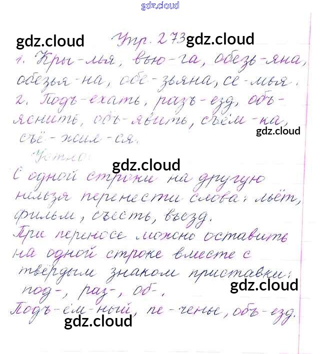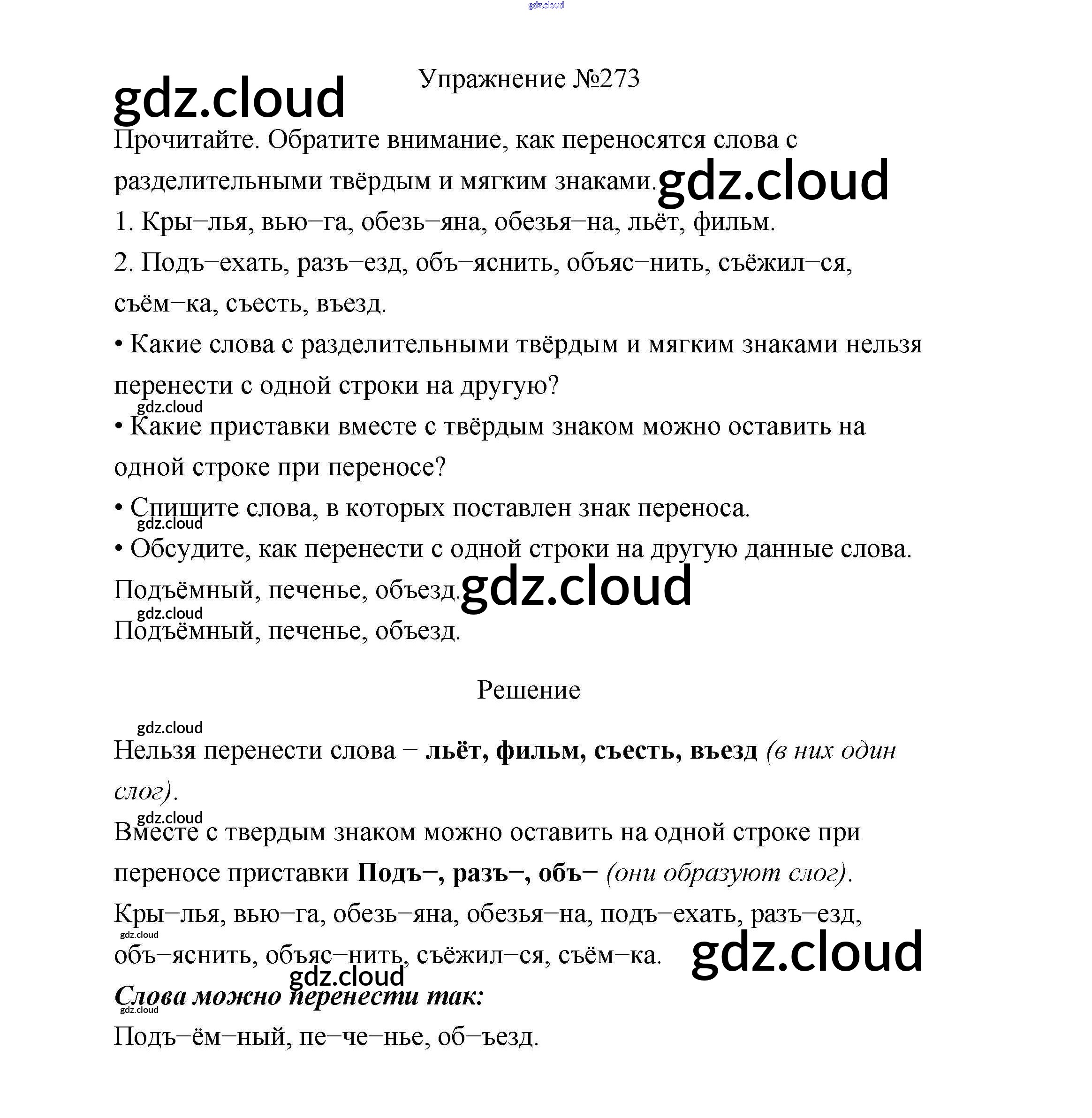 Ответ на задание 273 Учебник Русский язык за 3 (третий) класс Канакина, Горецкий Школа России 2013 Часть 1, 2