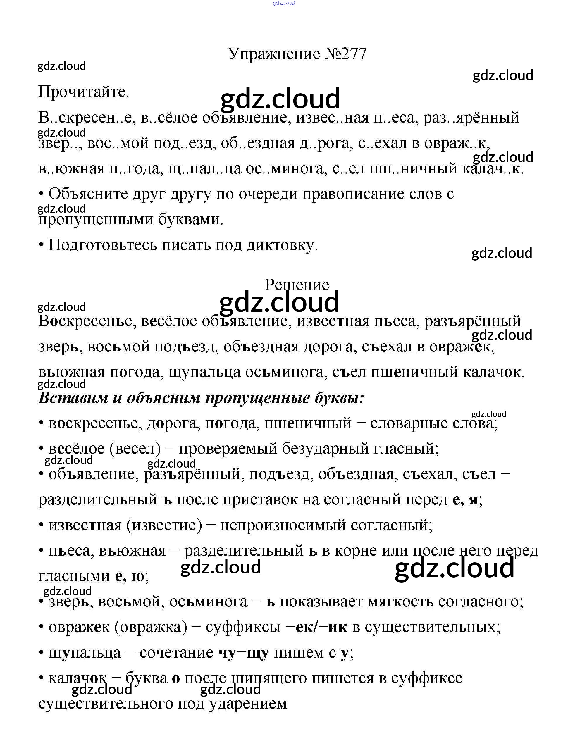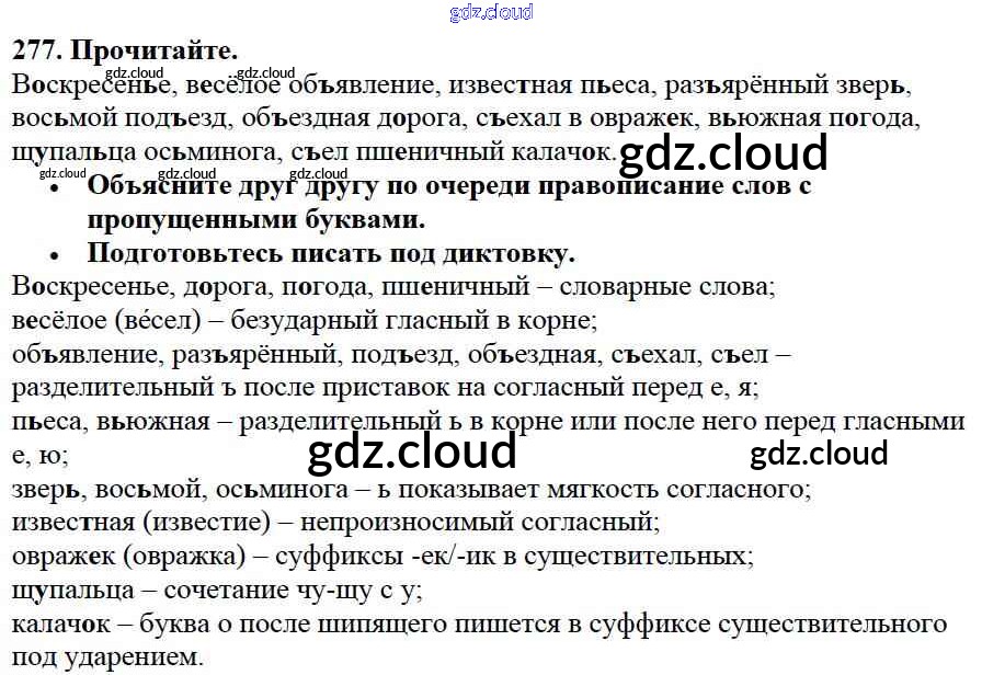 Ответ на задание 277 Учебник Русский язык за 3 (третий) класс Канакина, Горецкий Школа России 2013 Часть 1, 2