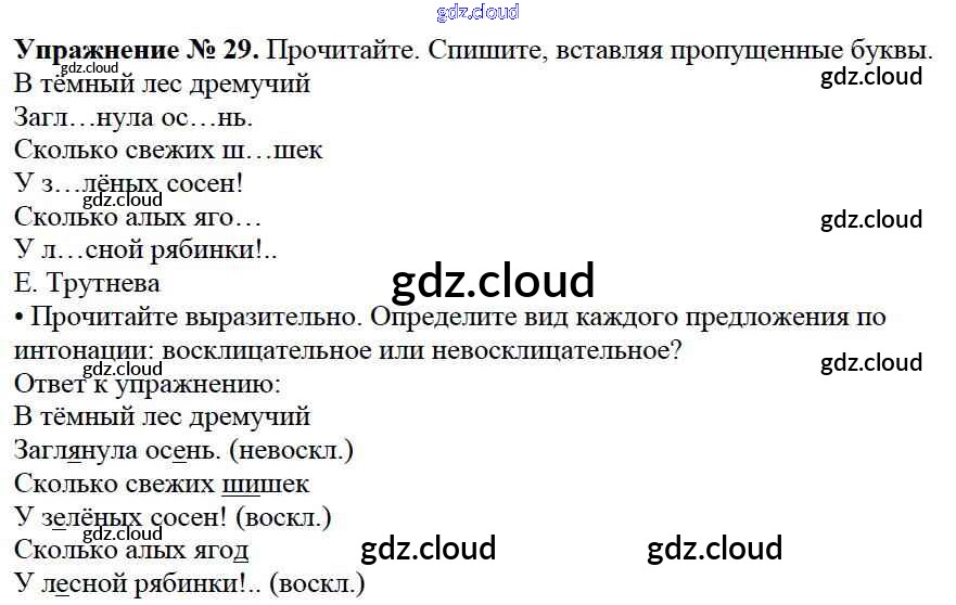 Ответ на задание 29 Учебник Русский язык за 3 (третий) класс Канакина, Горецкий Школа России 2013 Часть 1, 2