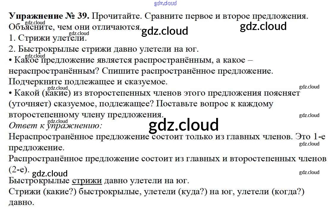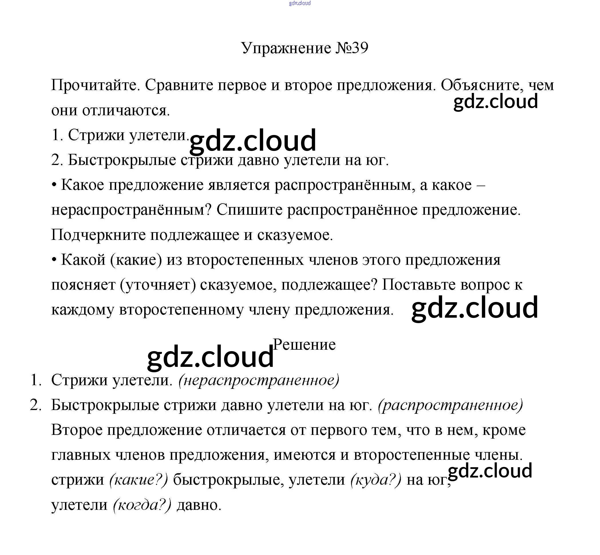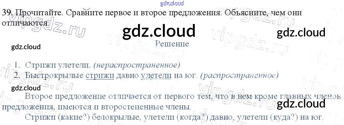 Ответ на задание 39 Учебник Русский язык за 3 (третий) класс Канакина, Горецкий Школа России 2013 Часть 1, 2