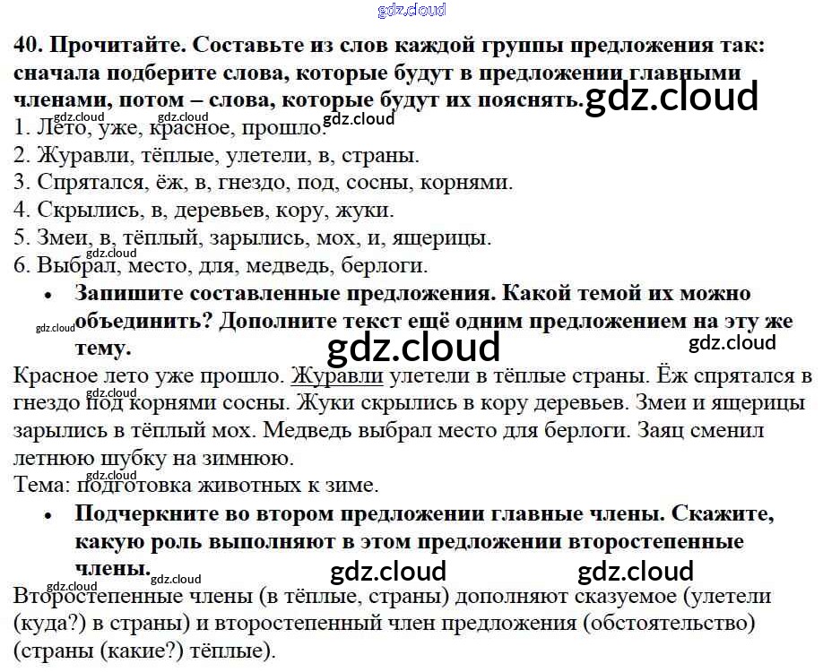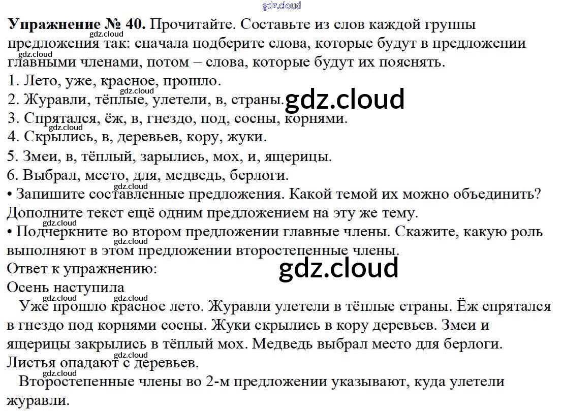 Ответ на задание 40 Учебник Русский язык за 3 (третий) класс Канакина, Горецкий Школа России 2013 Часть 1, 2