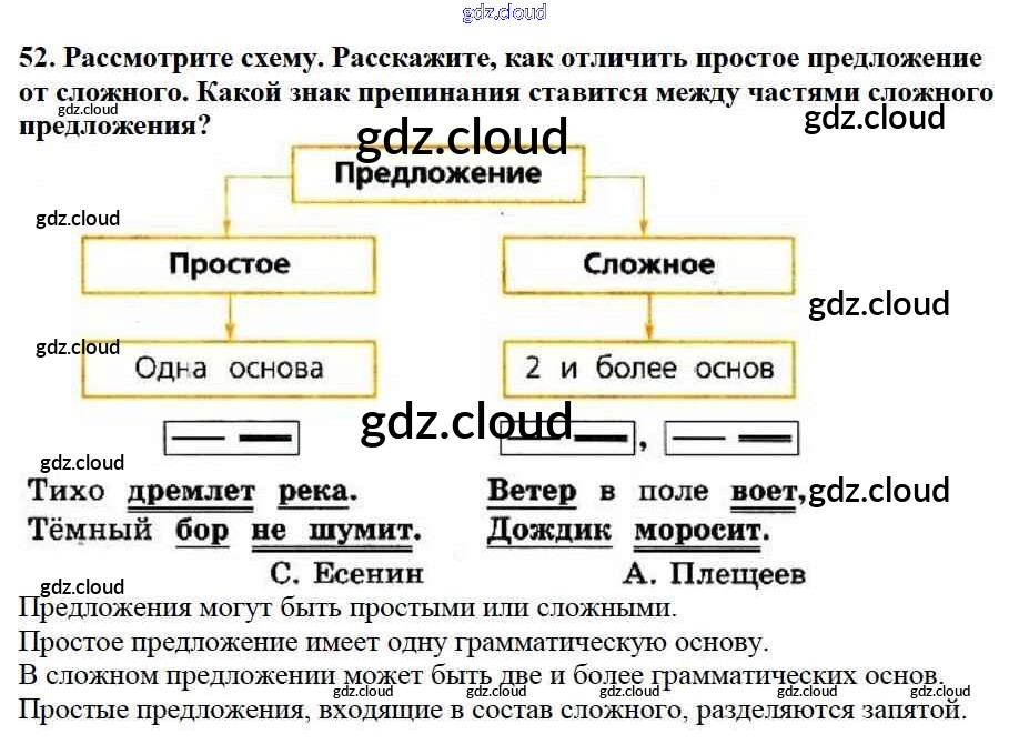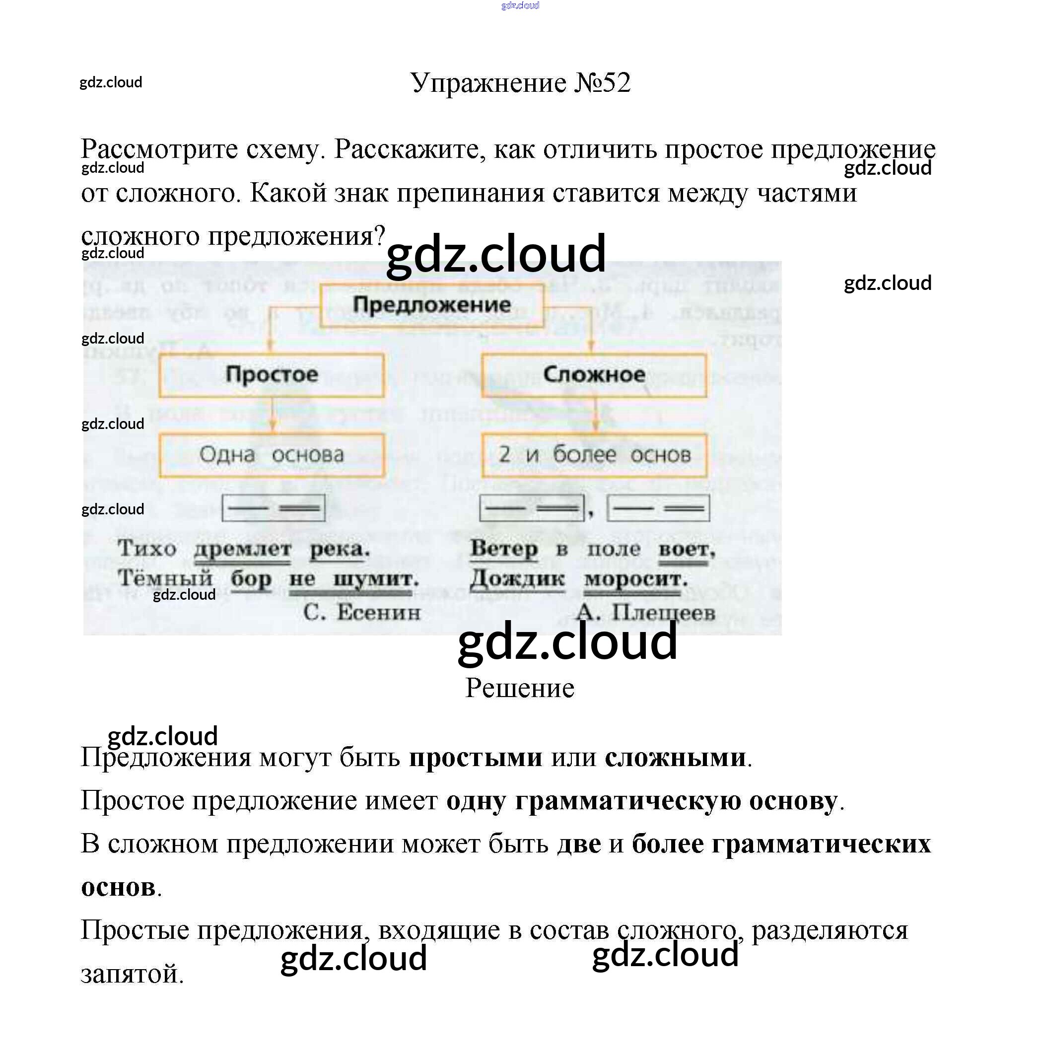 Ответ на задание 52 Учебник Русский язык за 3 (третий) класс Канакина, Горецкий Школа России 2013 Часть 1, 2