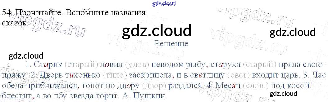 Ответ на задание 54 Учебник Русский язык за 3 (третий) класс Канакина, Горецкий Школа России 2013 Часть 1, 2