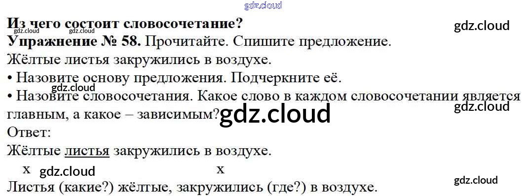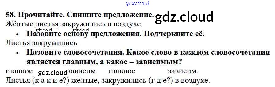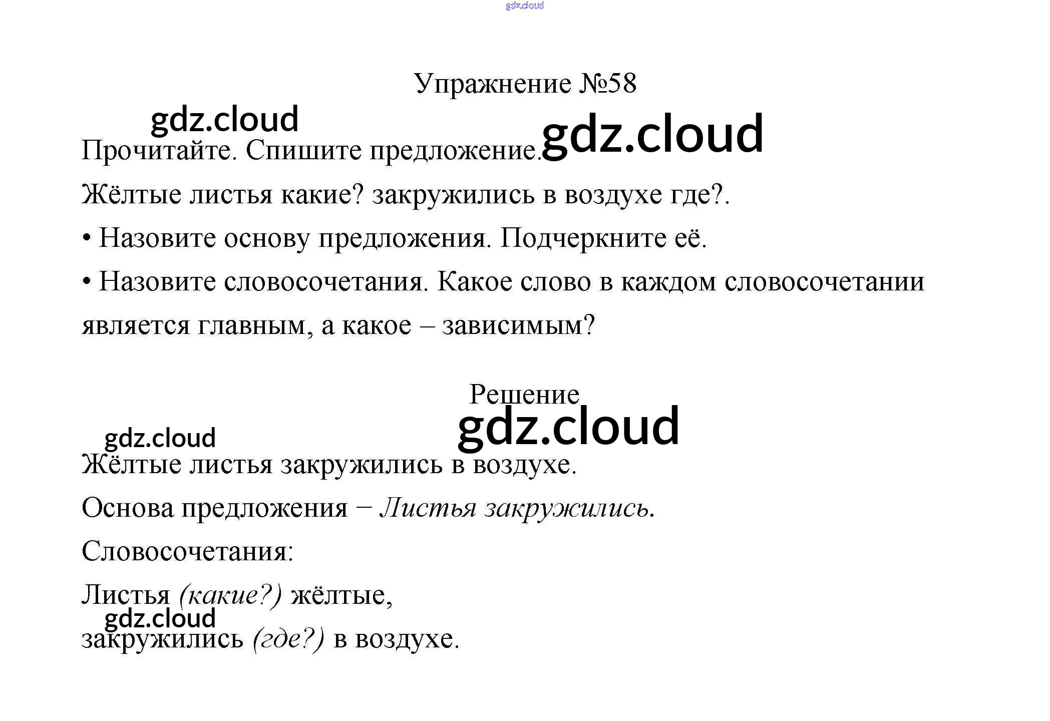 Ответ на задание 58 Учебник Русский язык за 3 (третий) класс Канакина, Горецкий Школа России 2013 Часть 1, 2