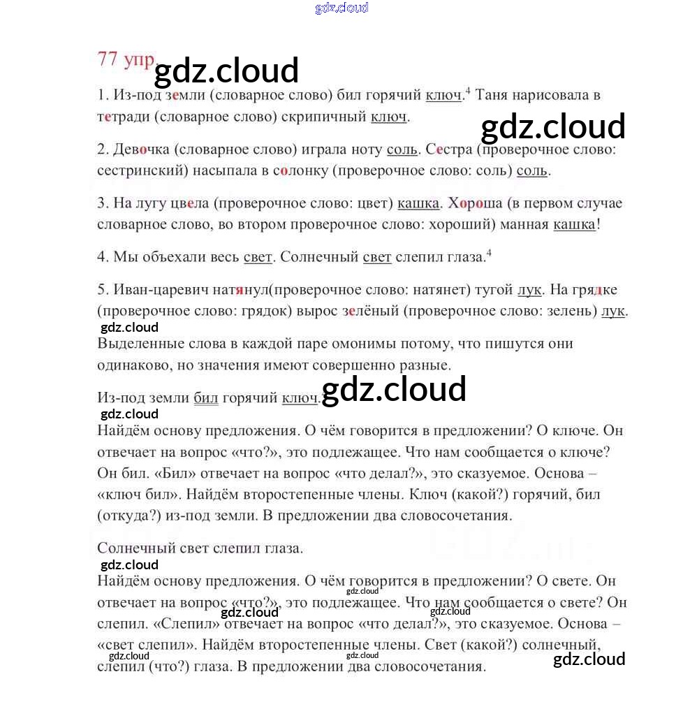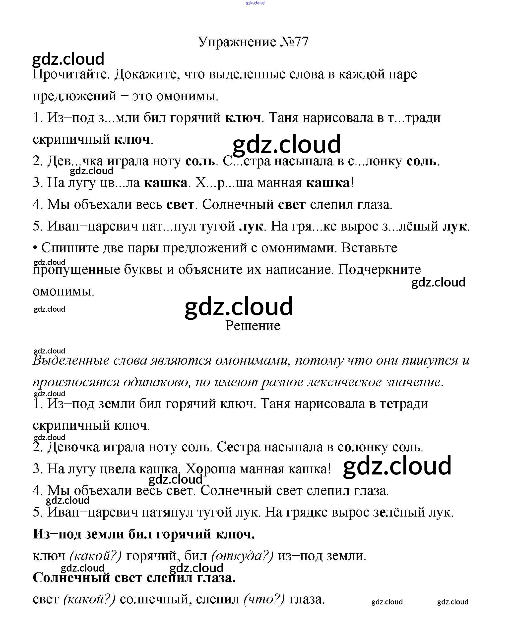 Ответ на задание 77 Учебник Русский язык за 3 (третий) класс Канакина, Горецкий Школа России 2013 Часть 1, 2