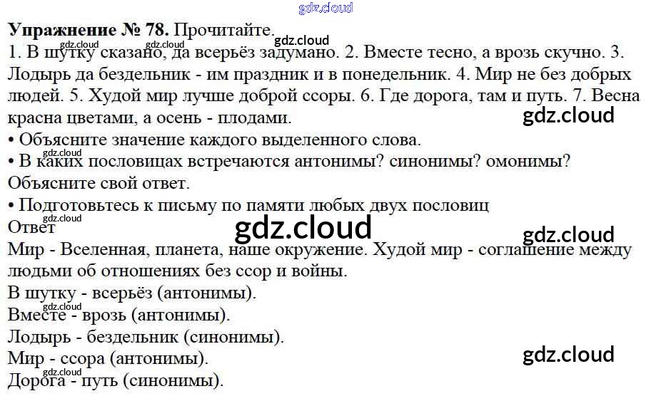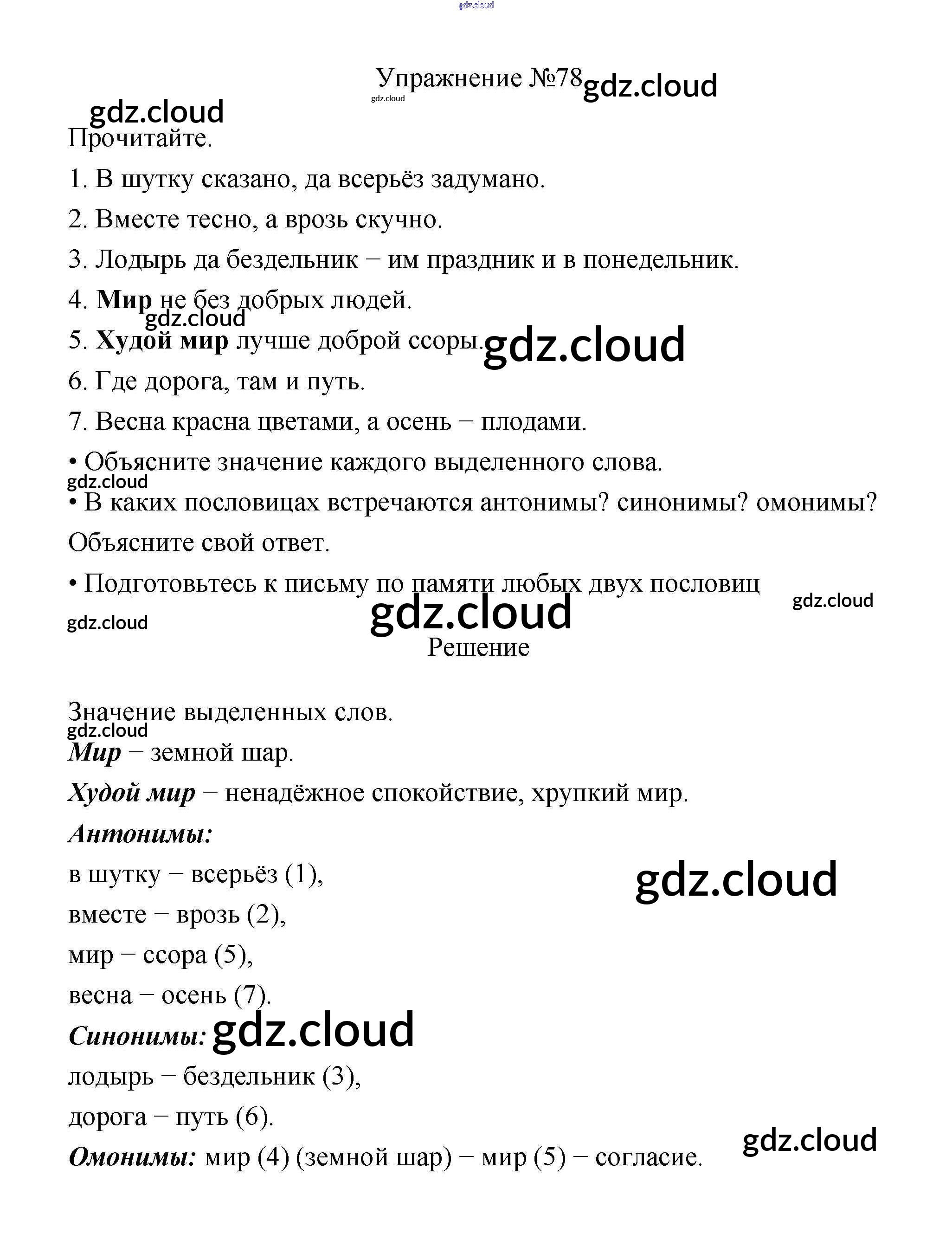 Ответ на задание 78 Учебник Русский язык за 3 (третий) класс Канакина, Горецкий Школа России 2013 Часть 1, 2