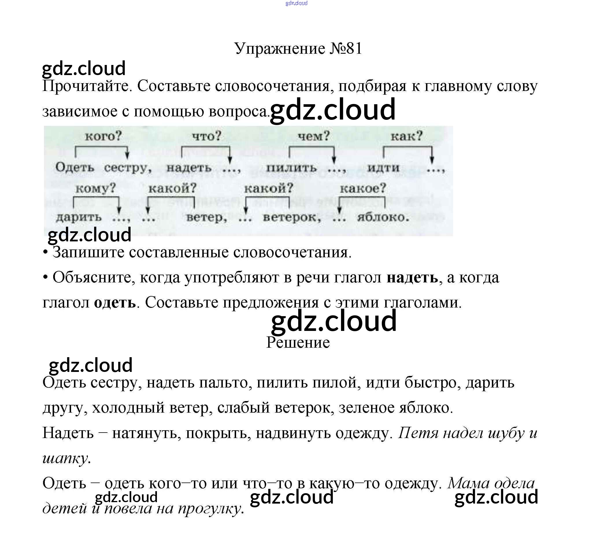 Ответ на задание 81 Учебник Русский язык за 3 (третий) класс Канакина, Горецкий Школа России 2013 Часть 1, 2