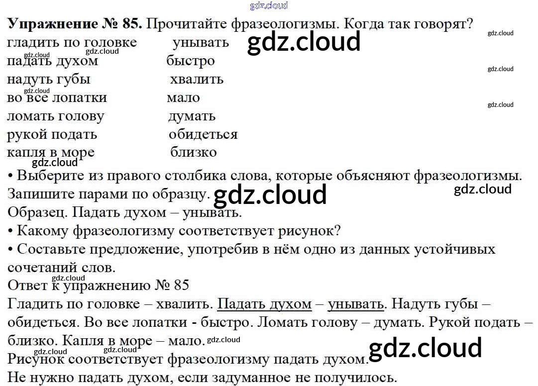 Ответ на задание 85 Учебник Русский язык за 3 (третий) класс Канакина, Горецкий Школа России 2013 Часть 1, 2
