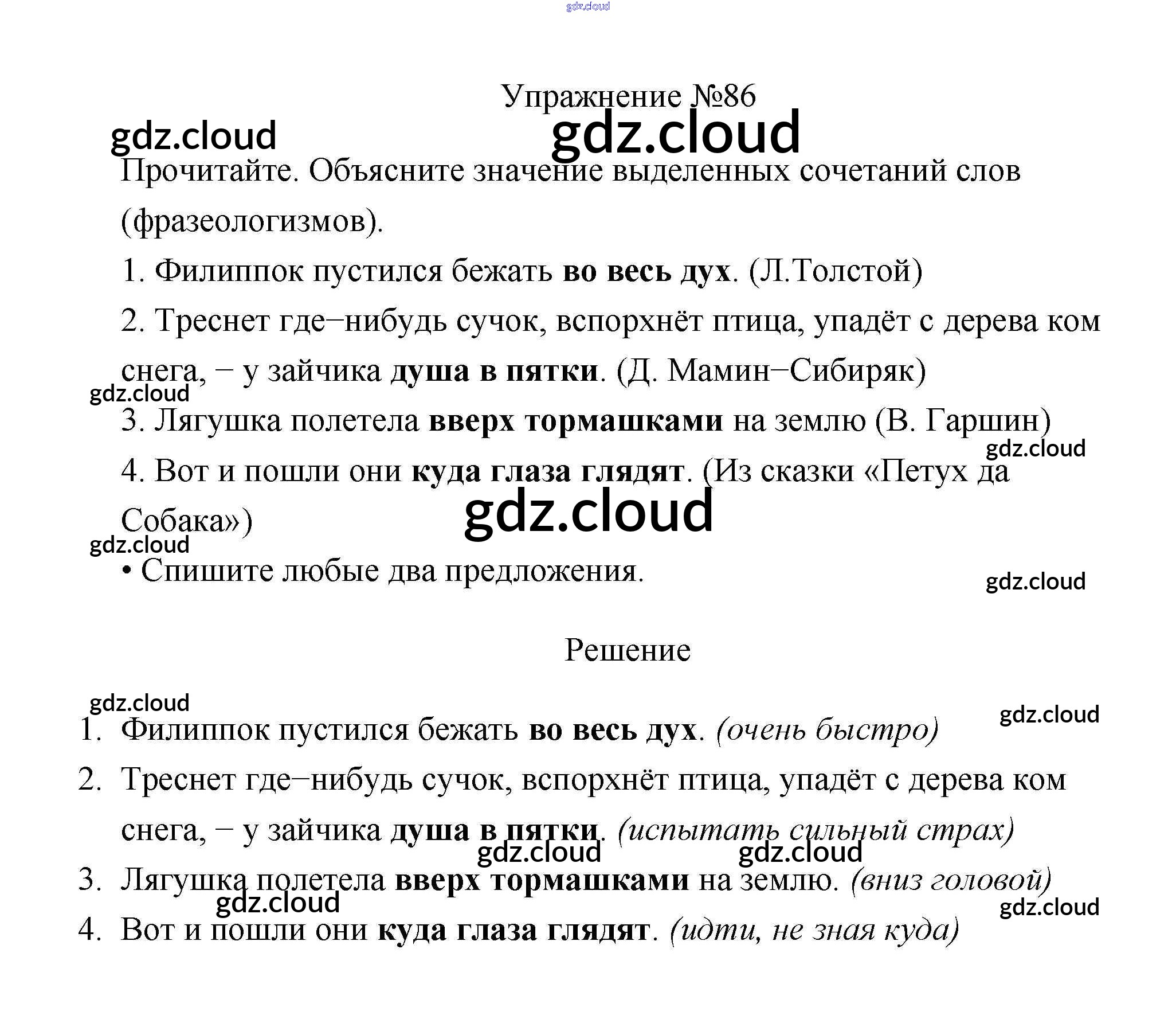Ответ на задание 86 Учебник Русский язык за 3 (третий) класс Канакина, Горецкий Школа России 2013 Часть 1, 2