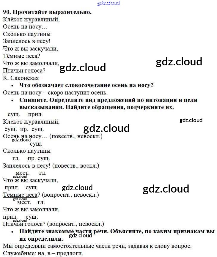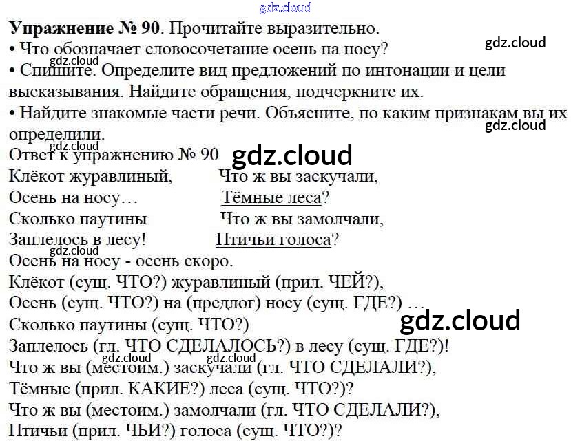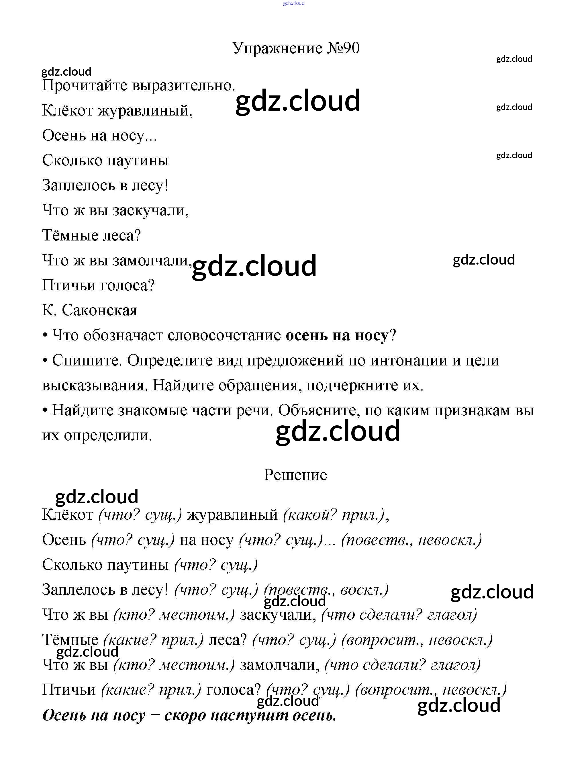 Ответ на задание 90 Учебник Русский язык за 3 (третий) класс Канакина, Горецкий Школа России 2013 Часть 1, 2