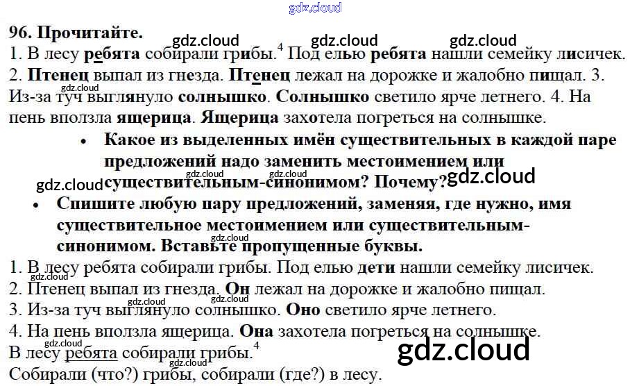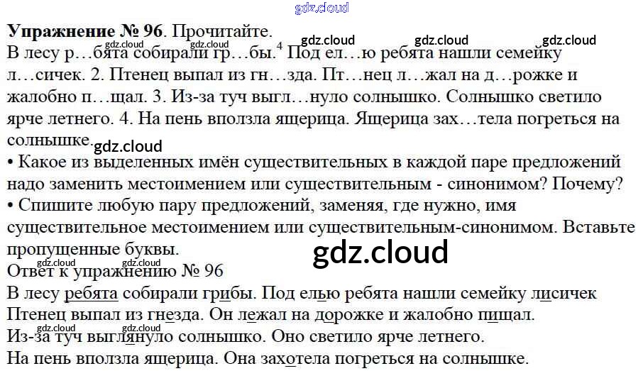 Ответ на задание 96 Учебник Русский язык за 3 (третий) класс Канакина, Горецкий Школа России 2013 Часть 1, 2