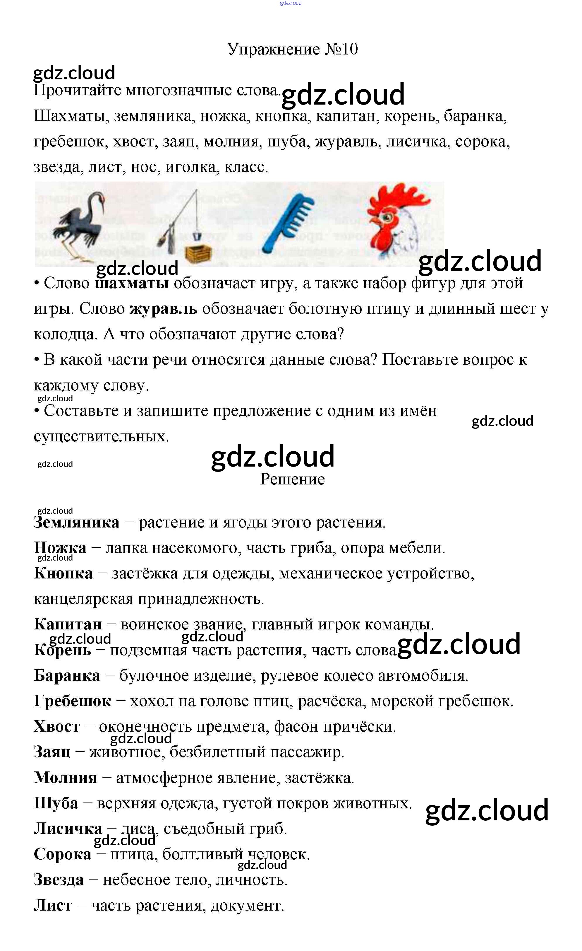 Ответ на задание 10 Учебник Русский язык за 3 (третий) класс Канакина, Горецкий Школа России 2013 Часть 1, 2