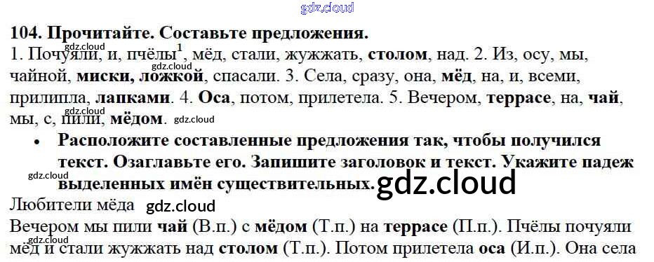 Ответ на задание 104 Учебник Русский язык за 3 (третий) класс Канакина, Горецкий Школа России 2013 Часть 1, 2