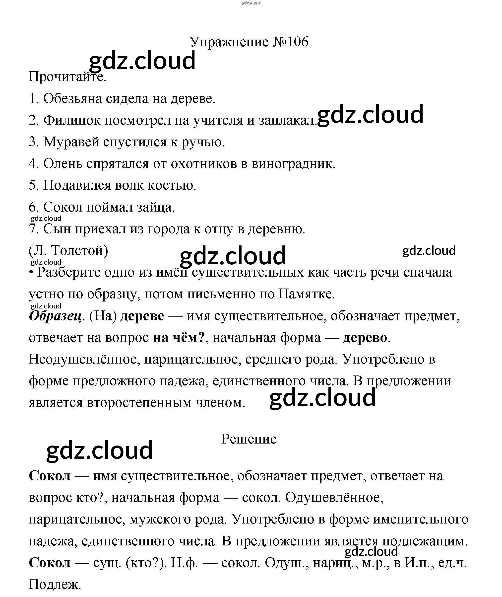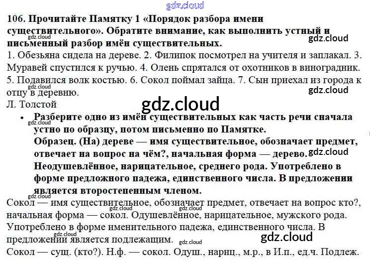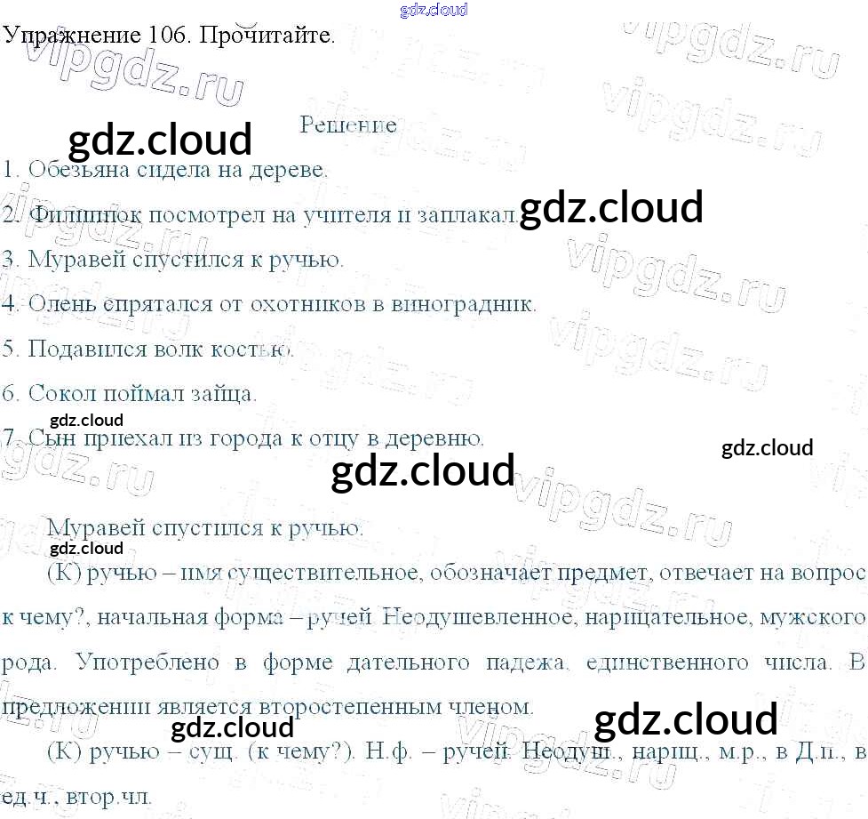 Ответ на задание 106 Учебник Русский язык за 3 (третий) класс Канакина, Горецкий Школа России 2013 Часть 1, 2