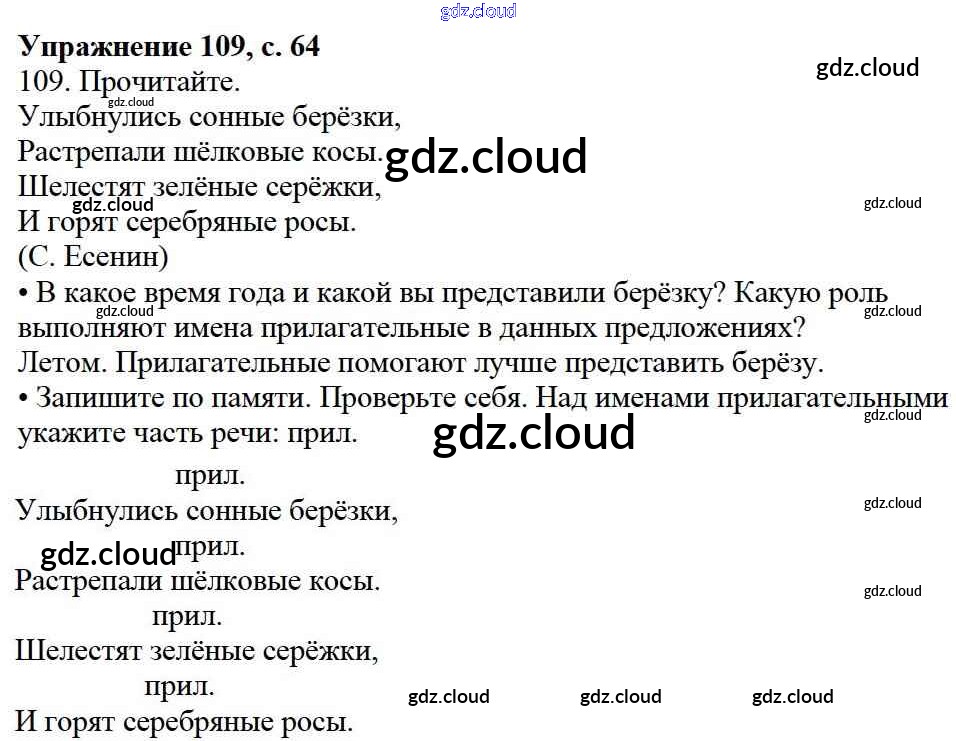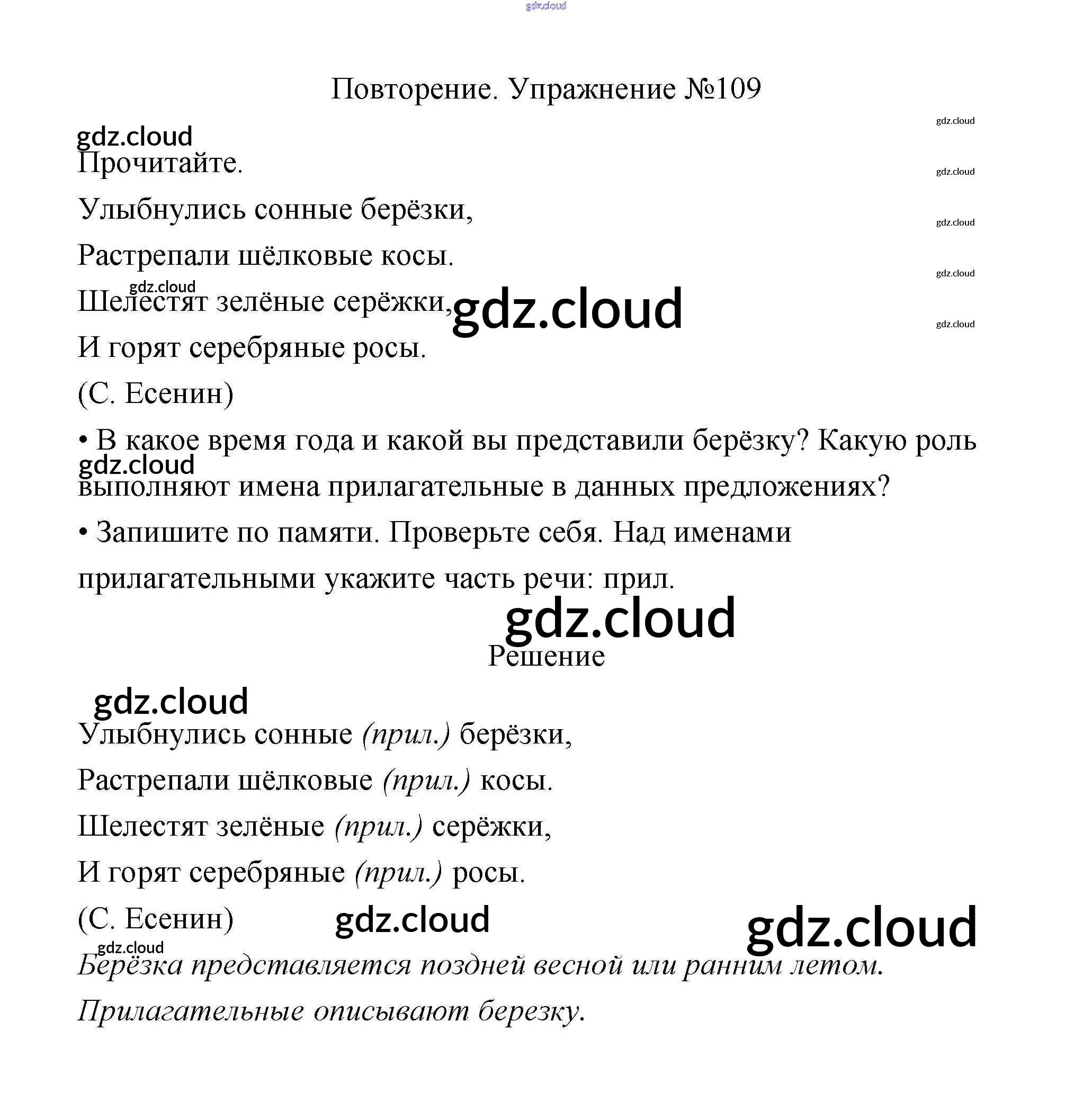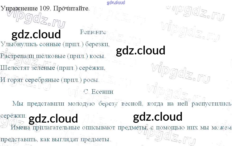Ответ на задание 109 Учебник Русский язык за 3 (третий) класс Канакина, Горецкий Школа России 2013 Часть 1, 2