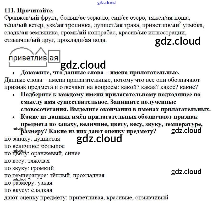 Ответ на задание 111 Учебник Русский язык за 3 (третий) класс Канакина, Горецкий Школа России 2013 Часть 1, 2