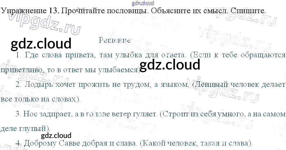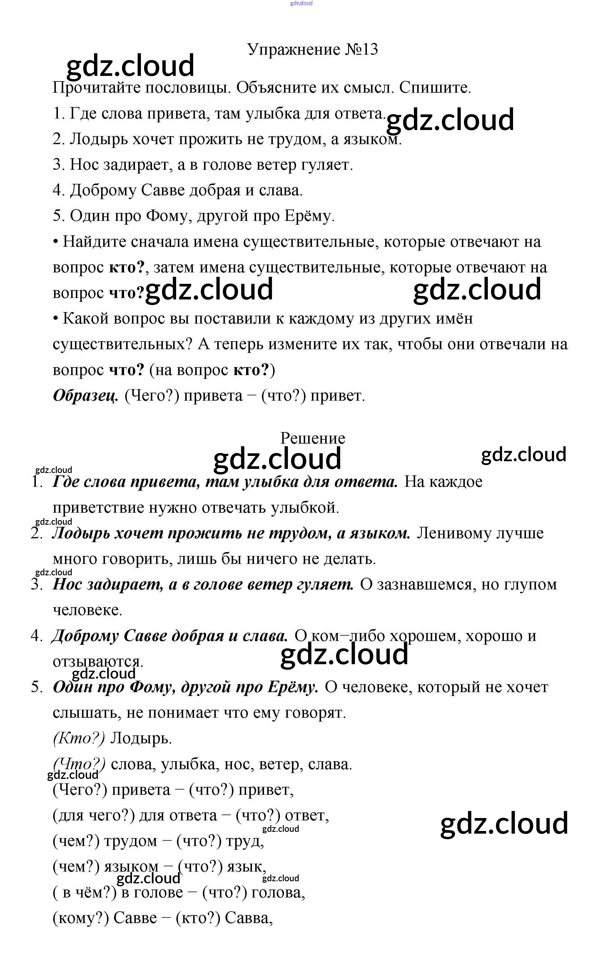 Ответ на задание 13 Учебник Русский язык за 3 (третий) класс Канакина, Горецкий Школа России 2013 Часть 1, 2