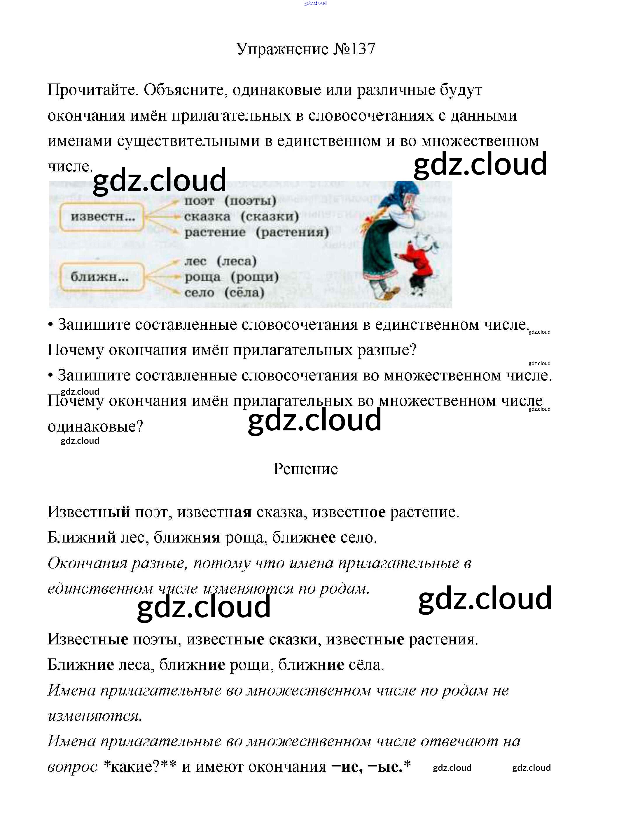 Ответ на задание 137 Учебник Русский язык за 3 (третий) класс Канакина, Горецкий Школа России 2013 Часть 1, 2