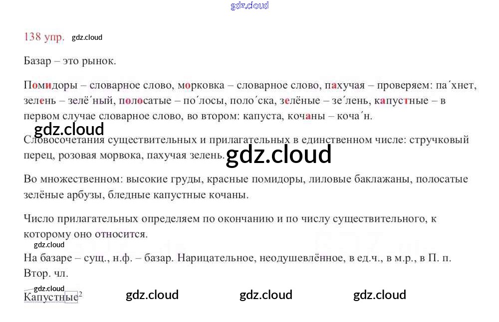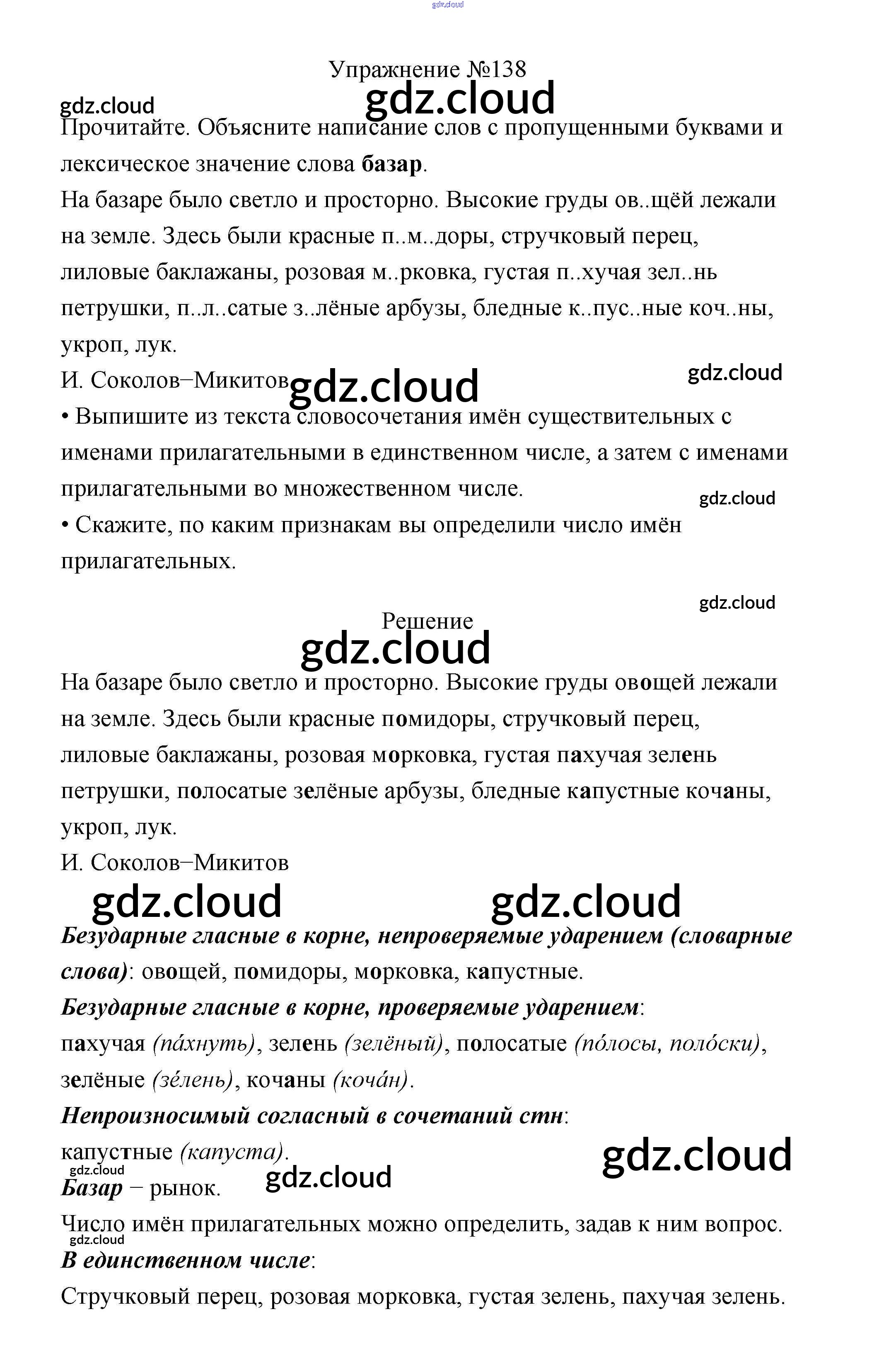 Ответ на задание 138 Учебник Русский язык за 3 (третий) класс Канакина, Горецкий Школа России 2013 Часть 1, 2