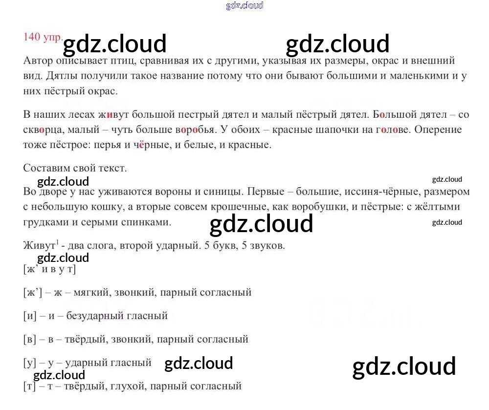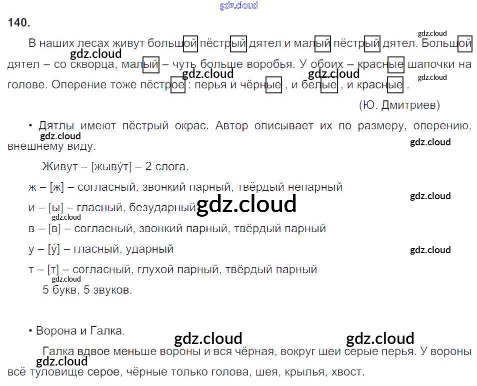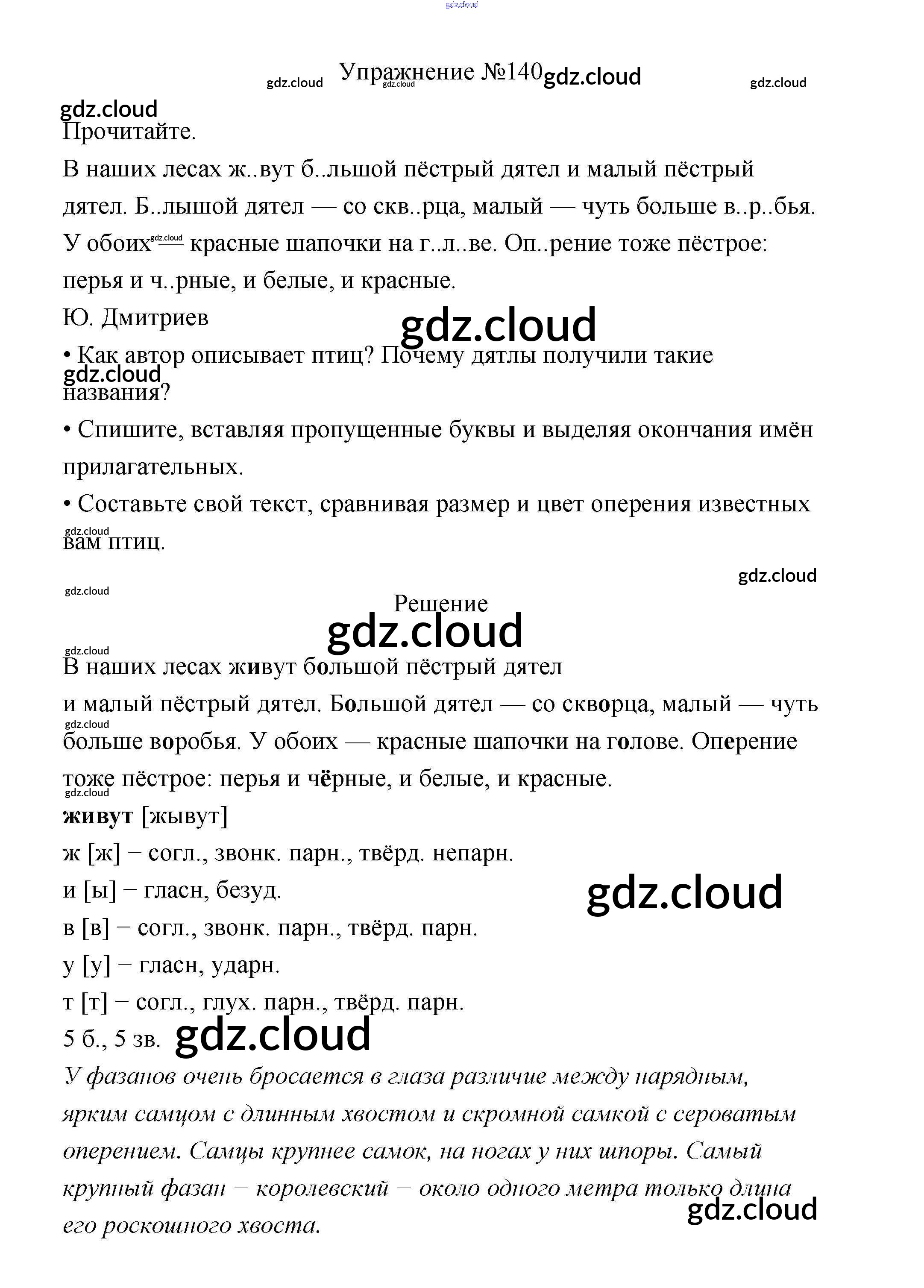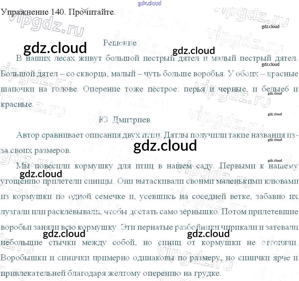 Ответ на задание 140 Учебник Русский язык за 3 (третий) класс Канакина, Горецкий Школа России 2013 Часть 1, 2