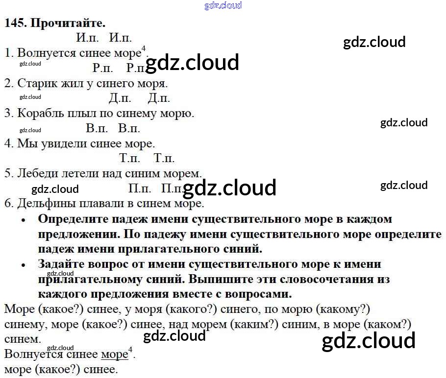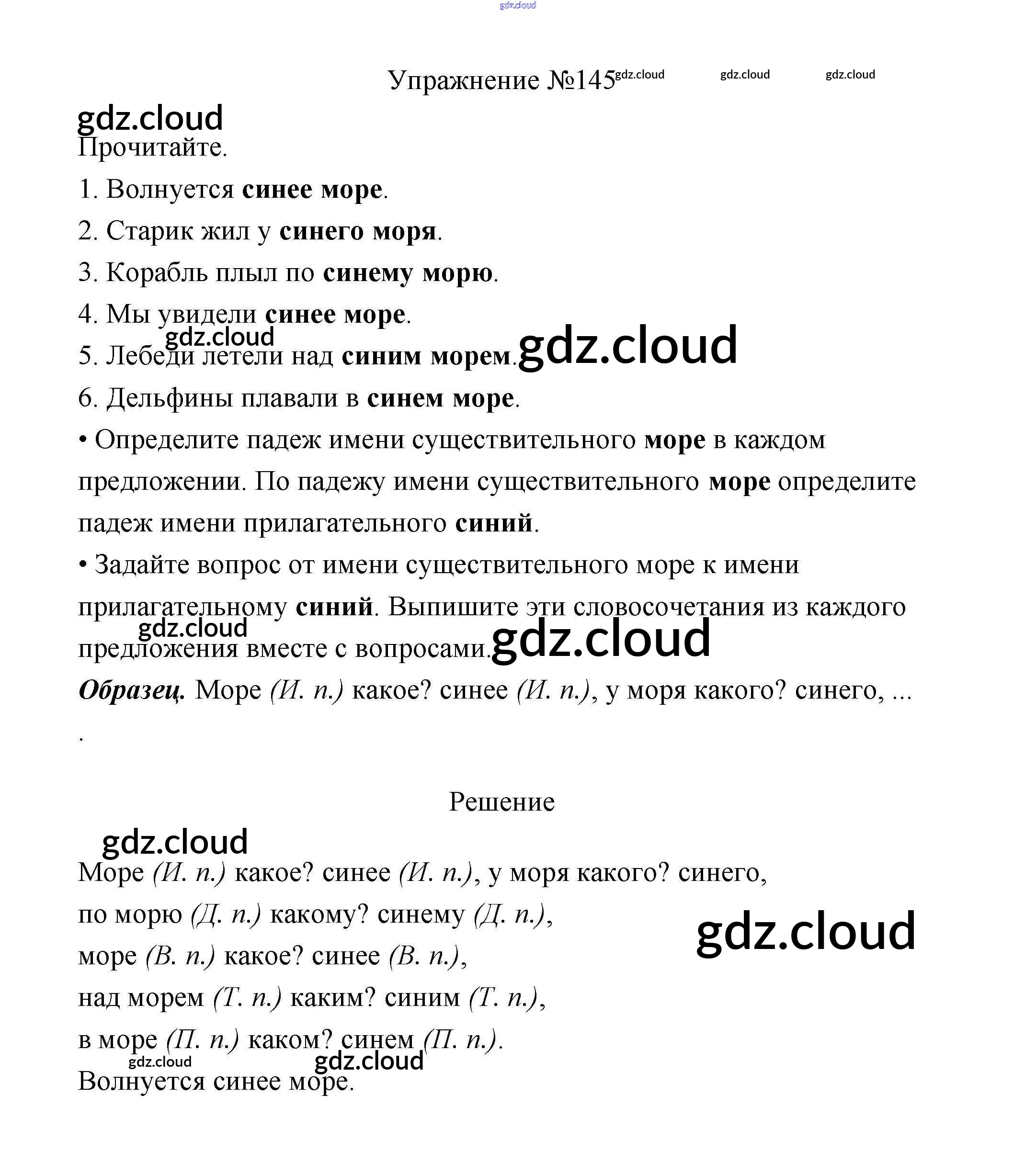 Ответ на задание 145 Учебник Русский язык за 3 (третий) класс Канакина, Горецкий Школа России 2013 Часть 1, 2