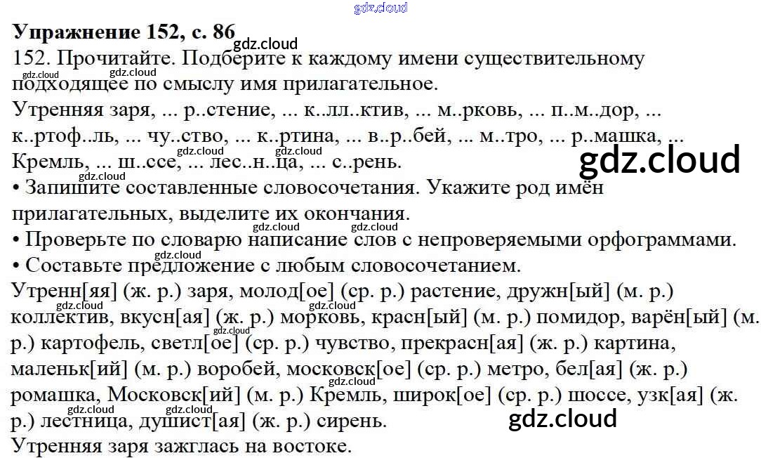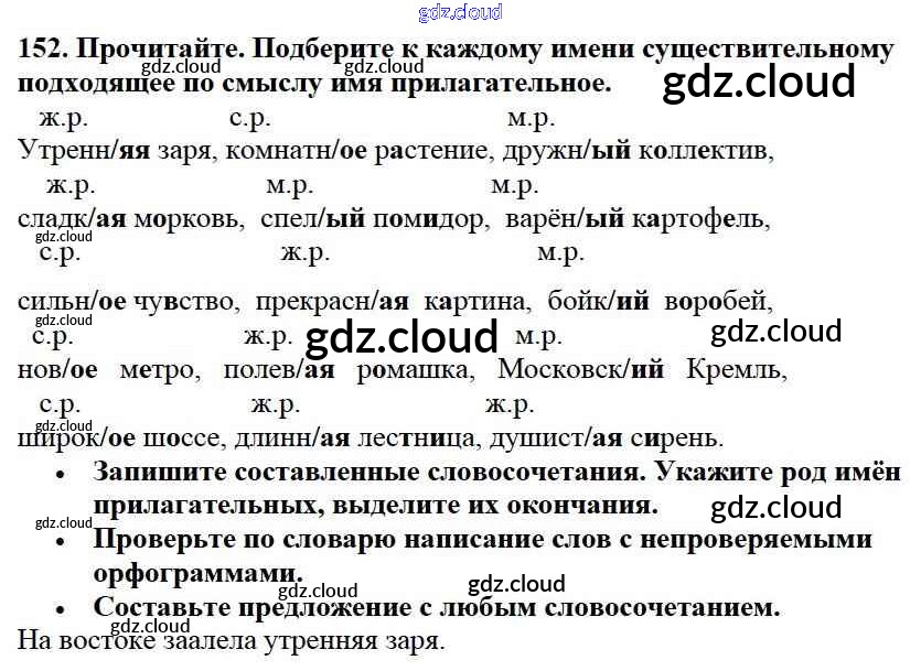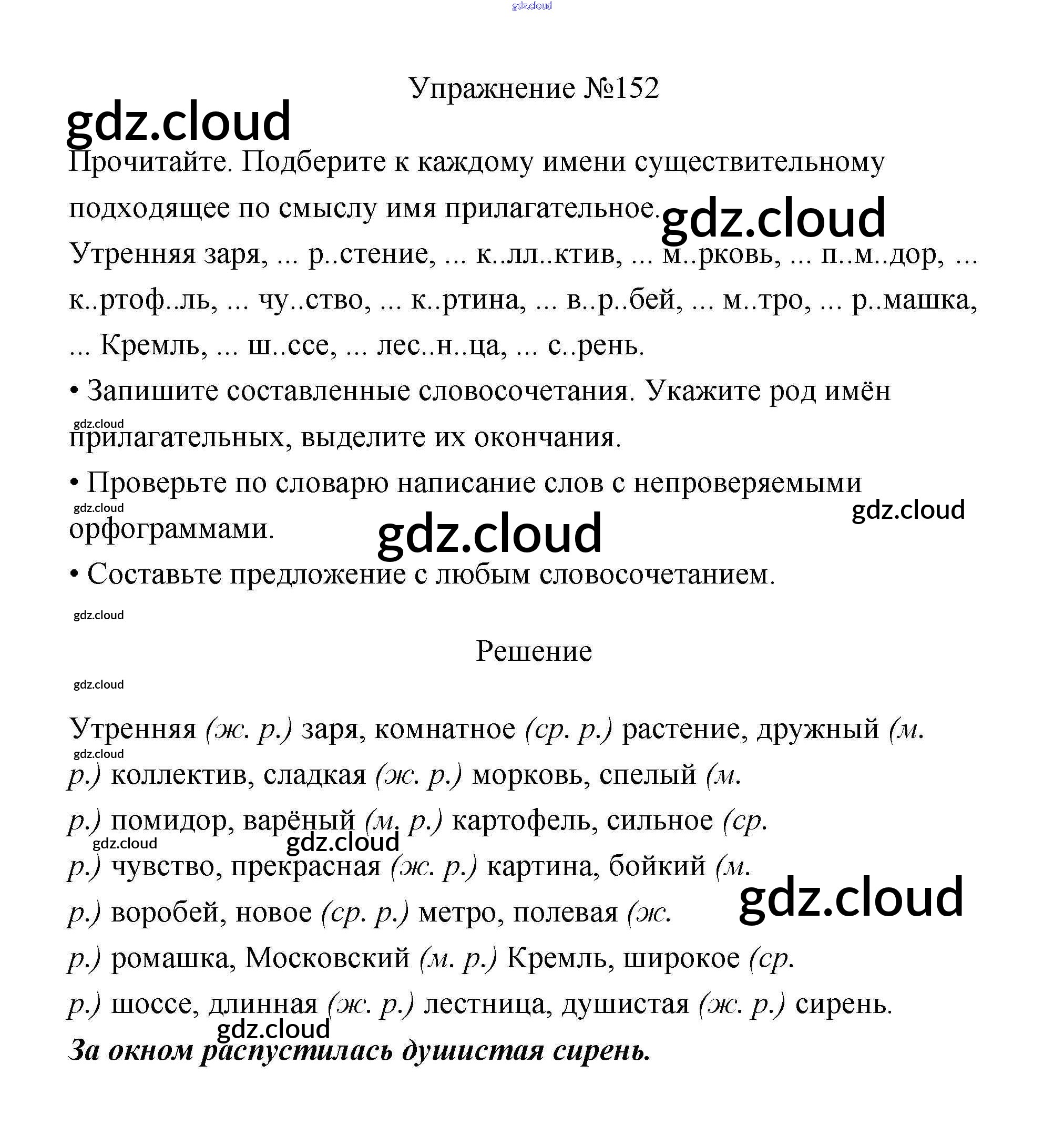 Ответ на задание 152 Учебник Русский язык за 3 (третий) класс Канакина, Горецкий Школа России 2013 Часть 1, 2