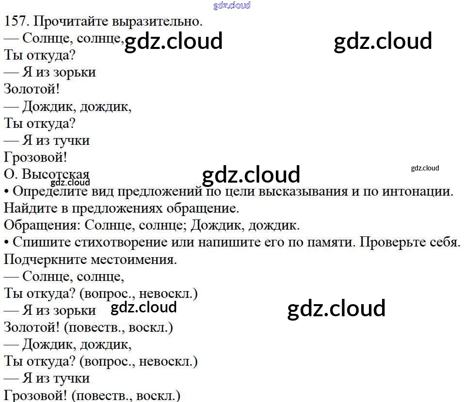 Ответ на задание 157 Учебник Русский язык за 3 (третий) класс Канакина, Горецкий Школа России 2013 Часть 1, 2