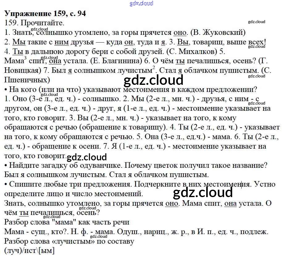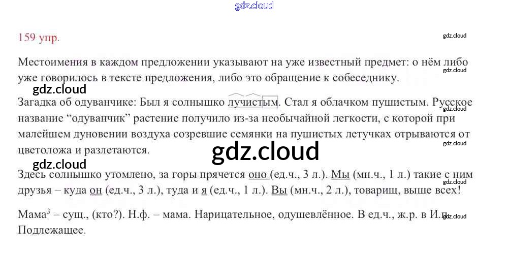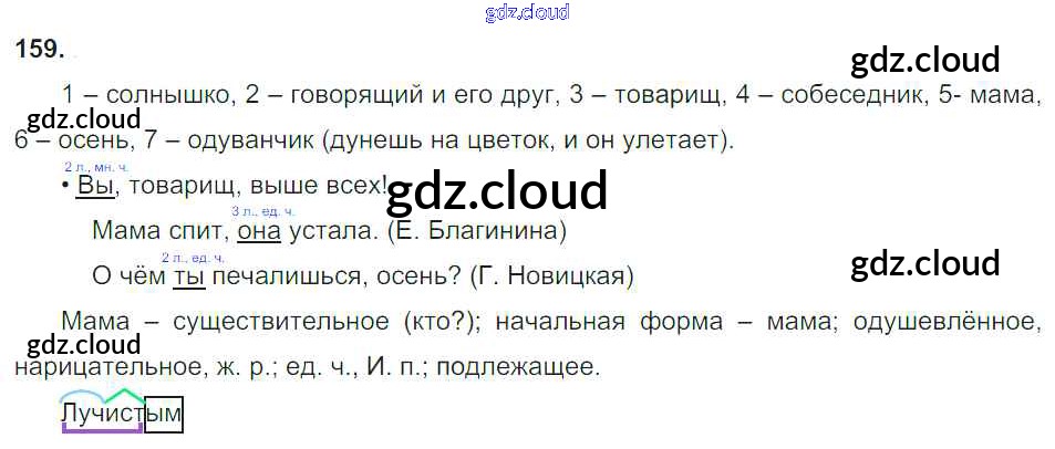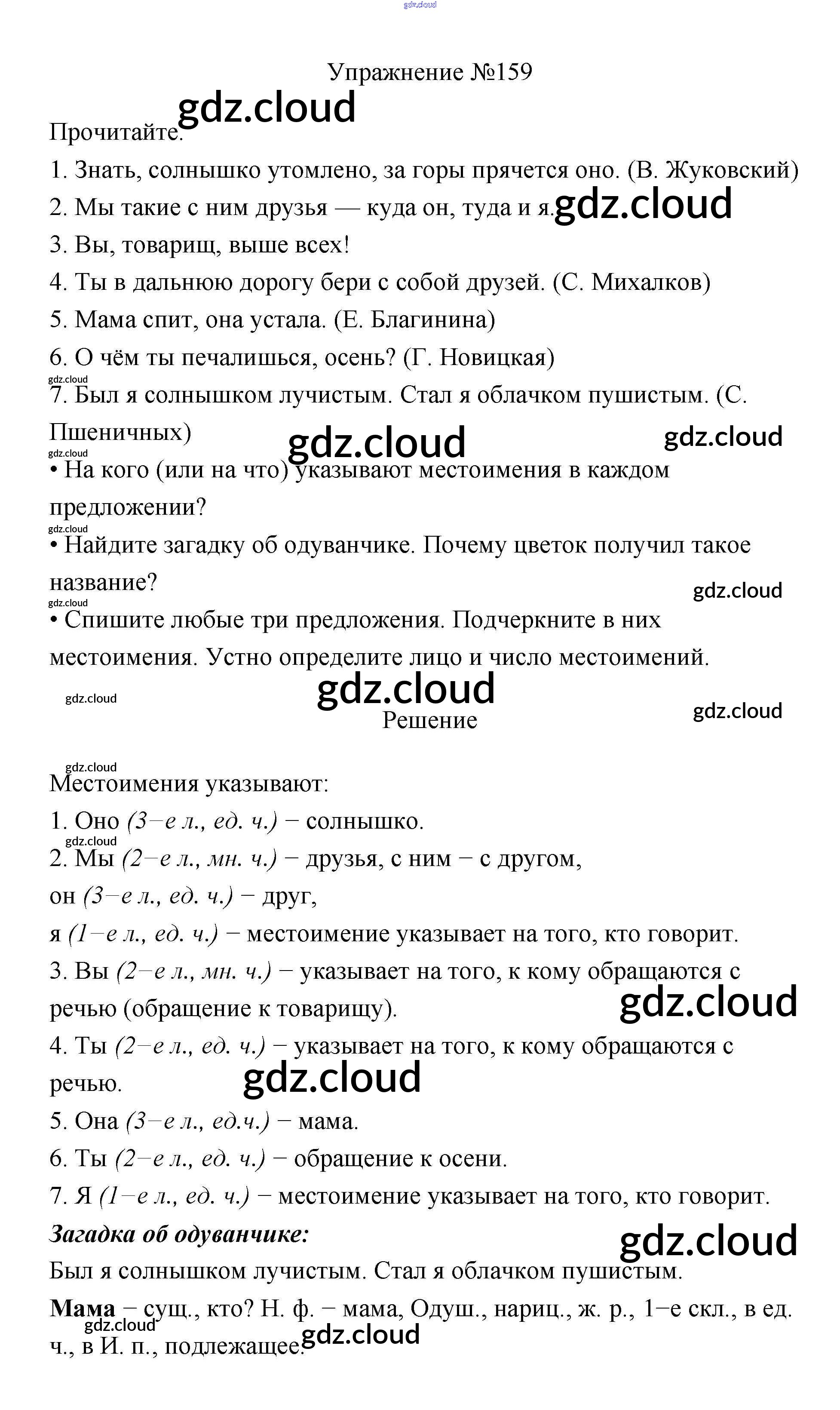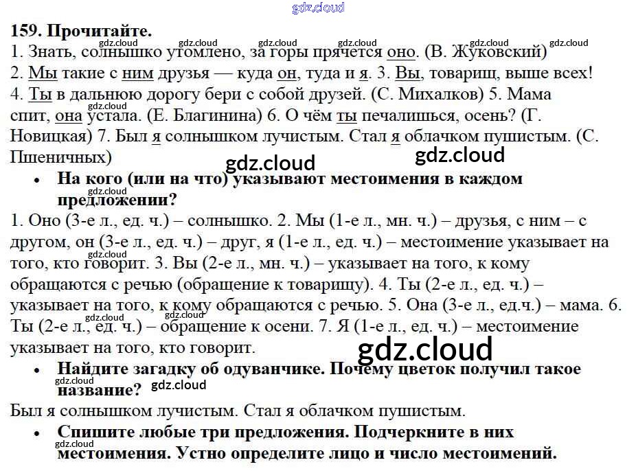Ответ на задание 159 Учебник Русский язык за 3 (третий) класс Канакина, Горецкий Школа России 2013 Часть 1, 2
