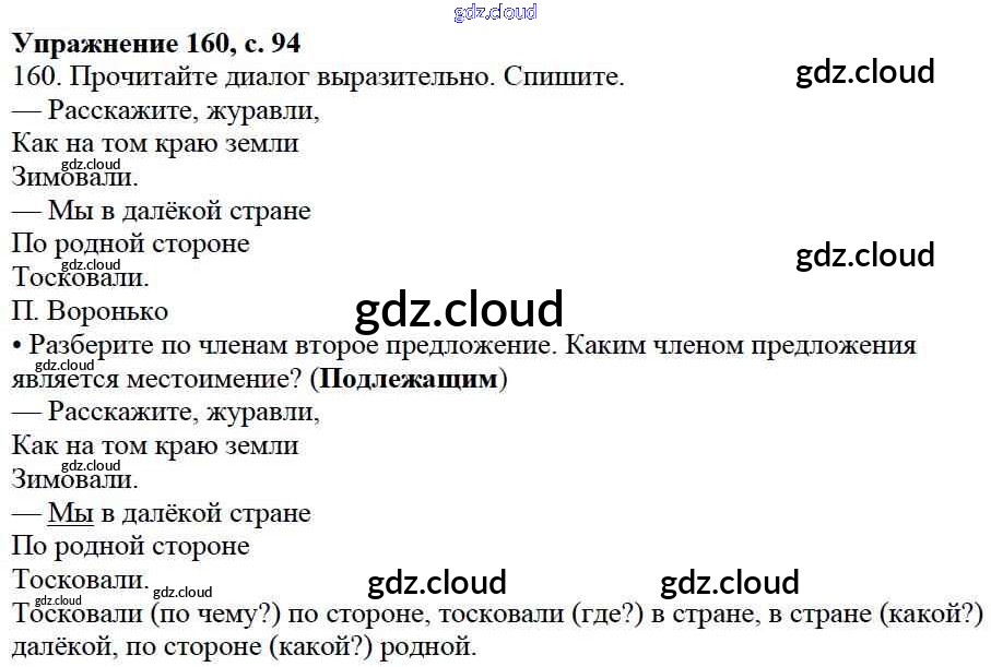 Ответ на задание 160 Учебник Русский язык за 3 (третий) класс Канакина, Горецкий Школа России 2013 Часть 1, 2