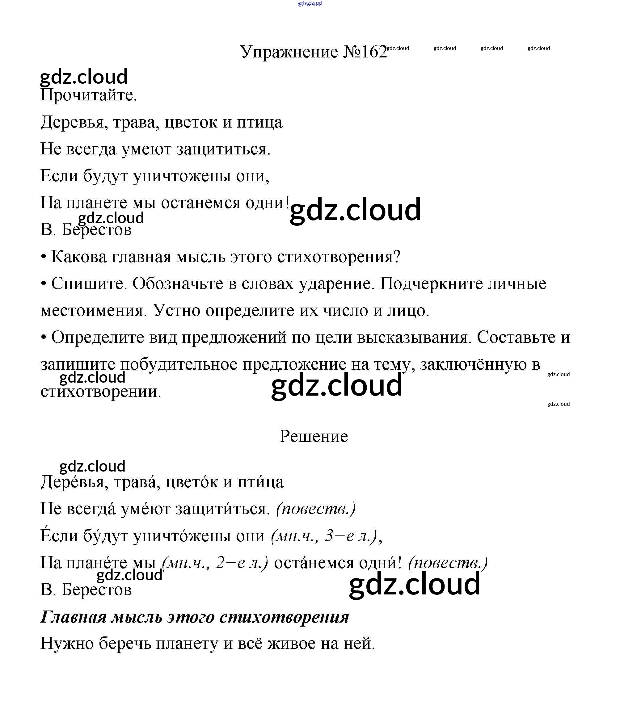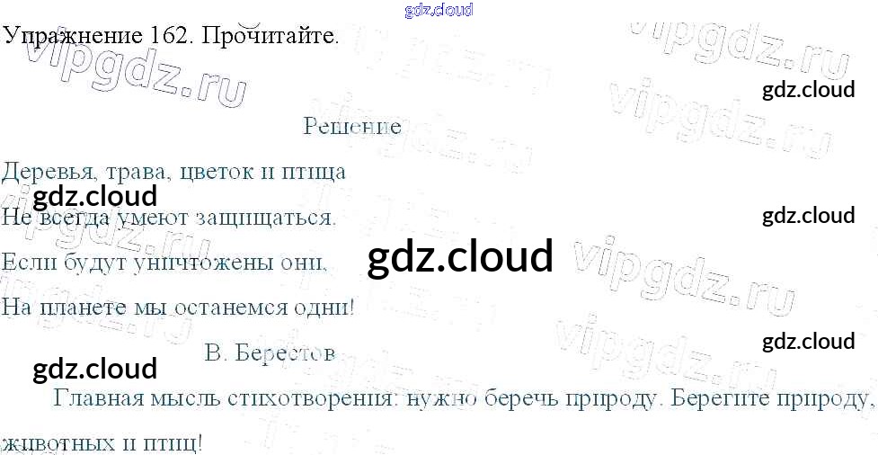 Ответ на задание 162 Учебник Русский язык за 3 (третий) класс Канакина, Горецкий Школа России 2013 Часть 1, 2