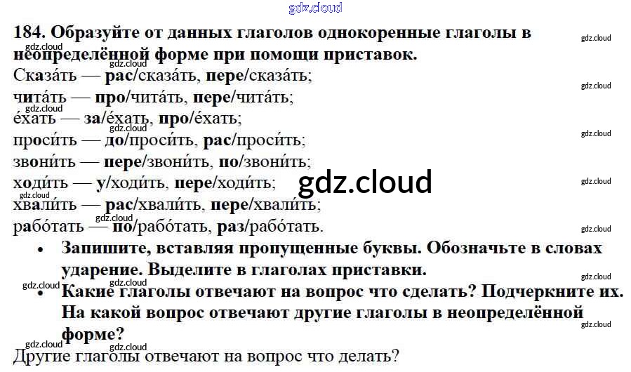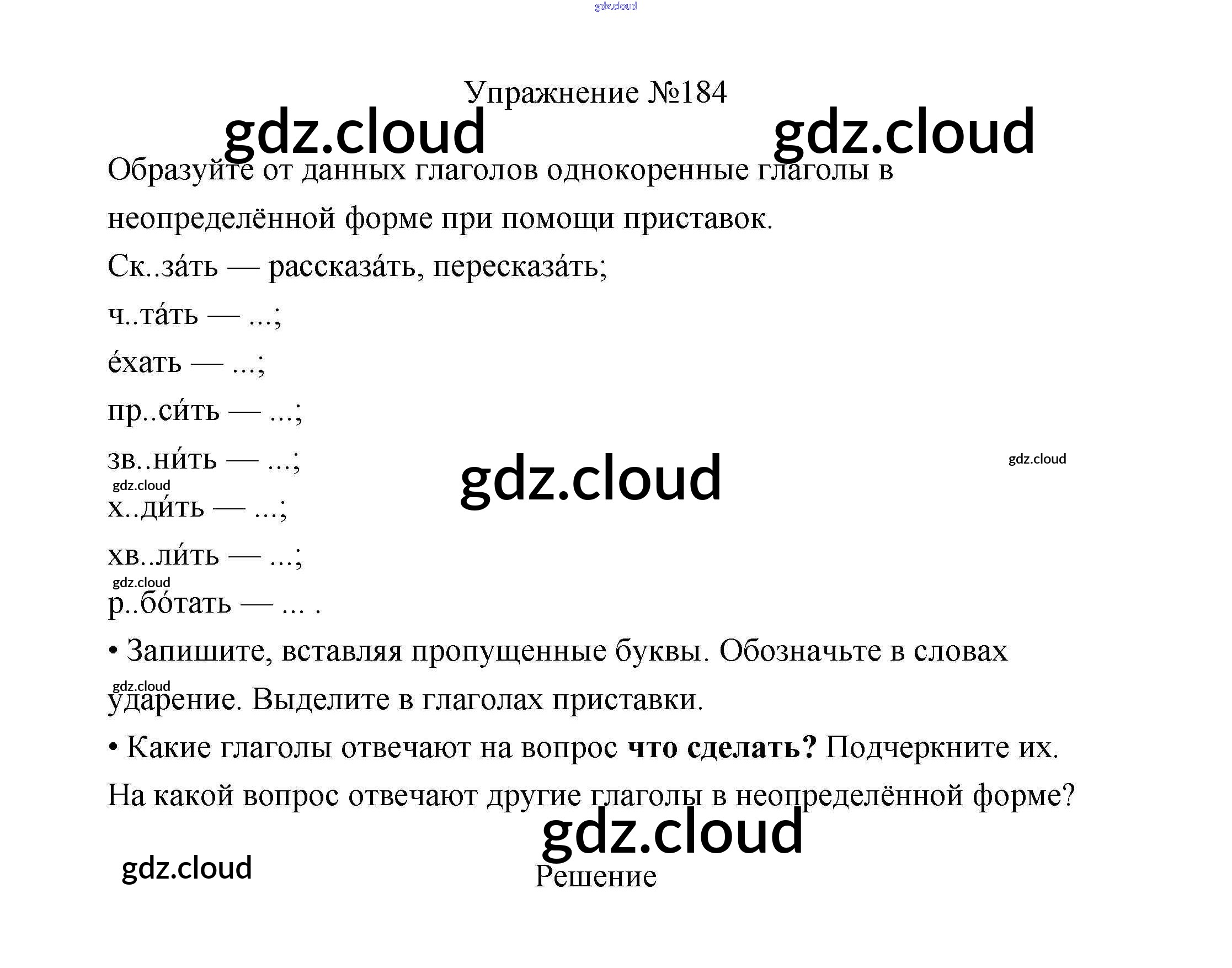 Ответ на задание 184 Учебник Русский язык за 3 (третий) класс Канакина, Горецкий Школа России 2013 Часть 1, 2