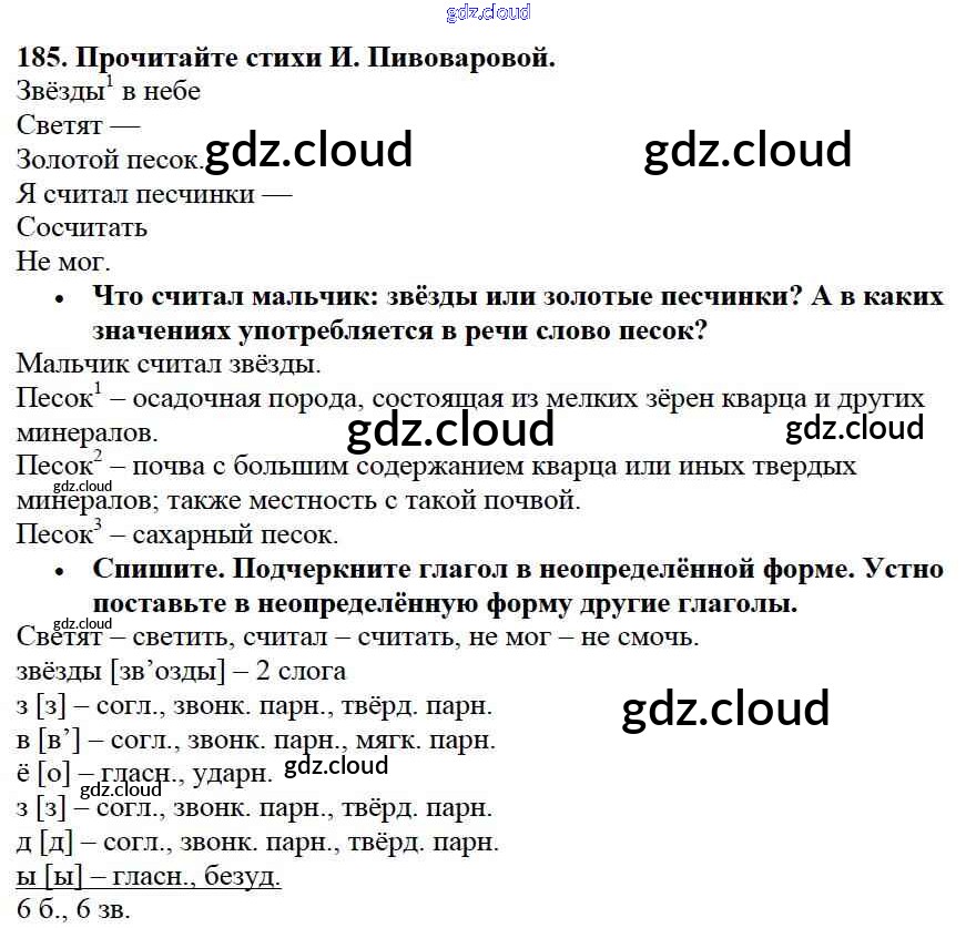 Ответ на задание 185 Учебник Русский язык за 3 (третий) класс Канакина, Горецкий Школа России 2013 Часть 1, 2