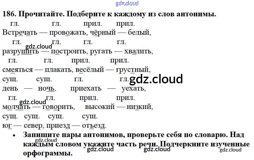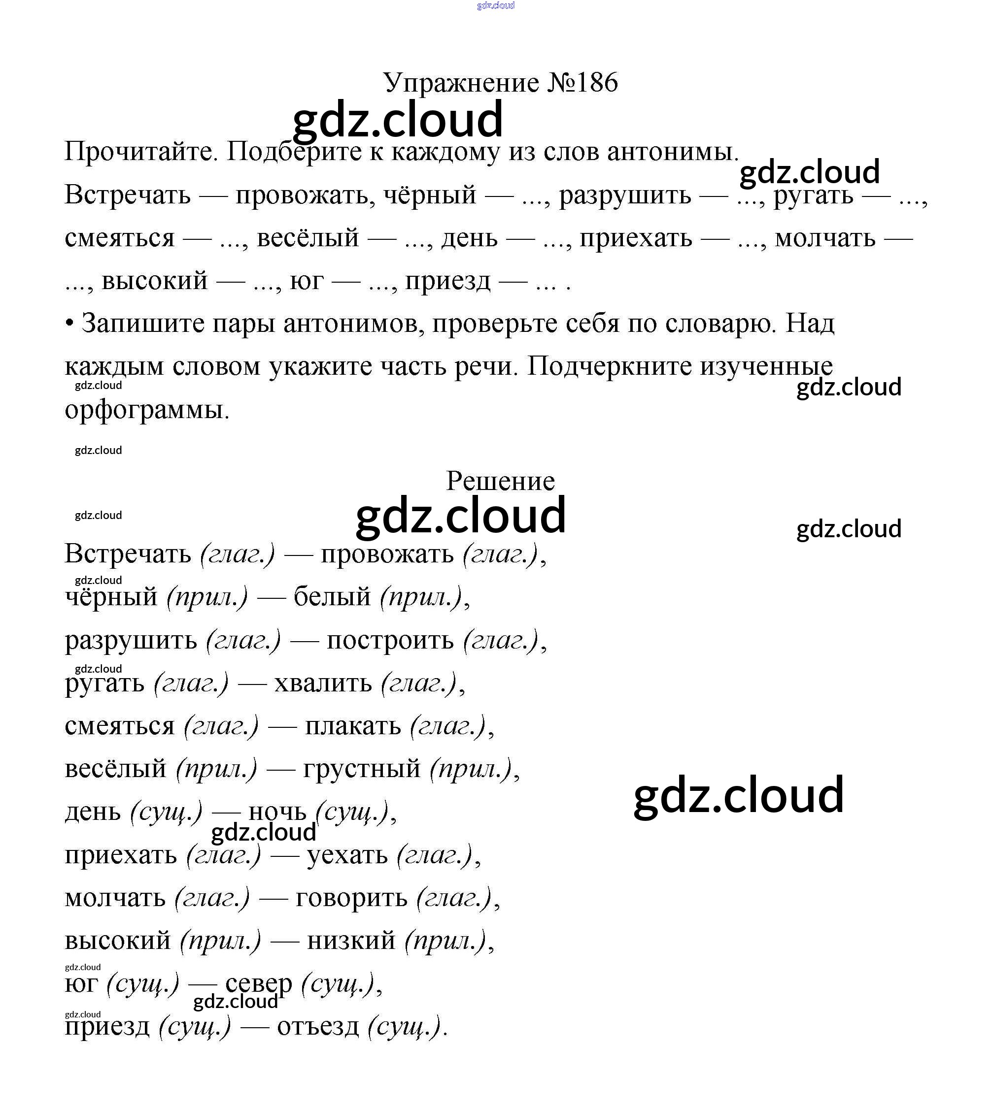 Ответ на задание 186 Учебник Русский язык за 3 (третий) класс Канакина, Горецкий Школа России 2013 Часть 1, 2