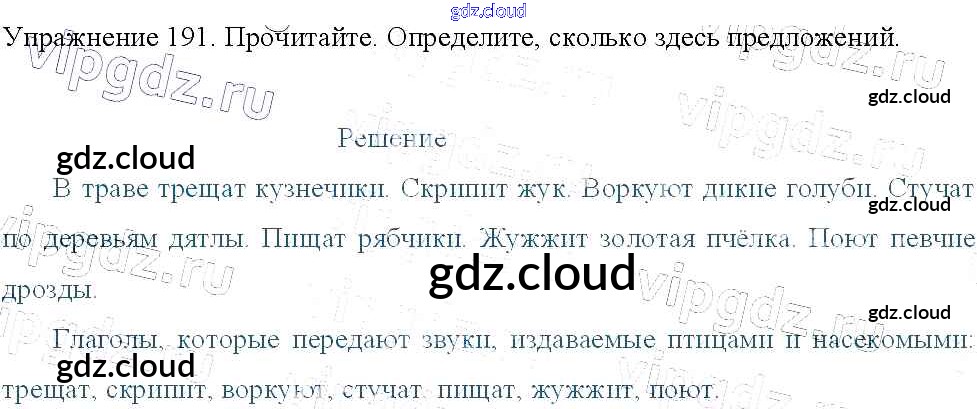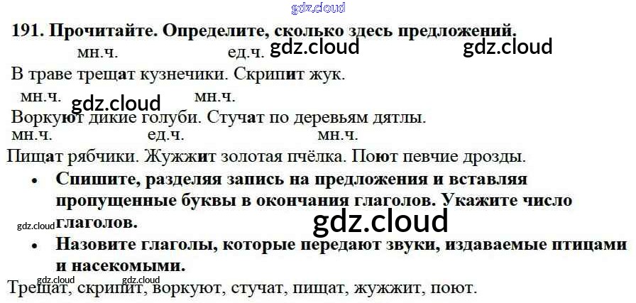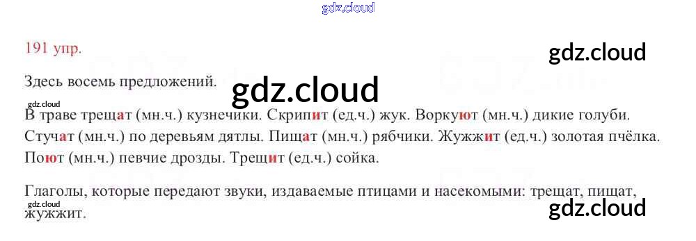 Ответ на задание 191 Учебник Русский язык за 3 (третий) класс Канакина, Горецкий Школа России 2013 Часть 1, 2