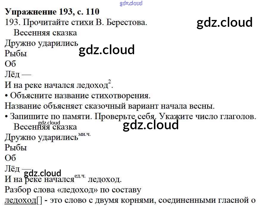 Ответ на задание 193 Учебник Русский язык за 3 (третий) класс Канакина, Горецкий Школа России 2013 Часть 1, 2