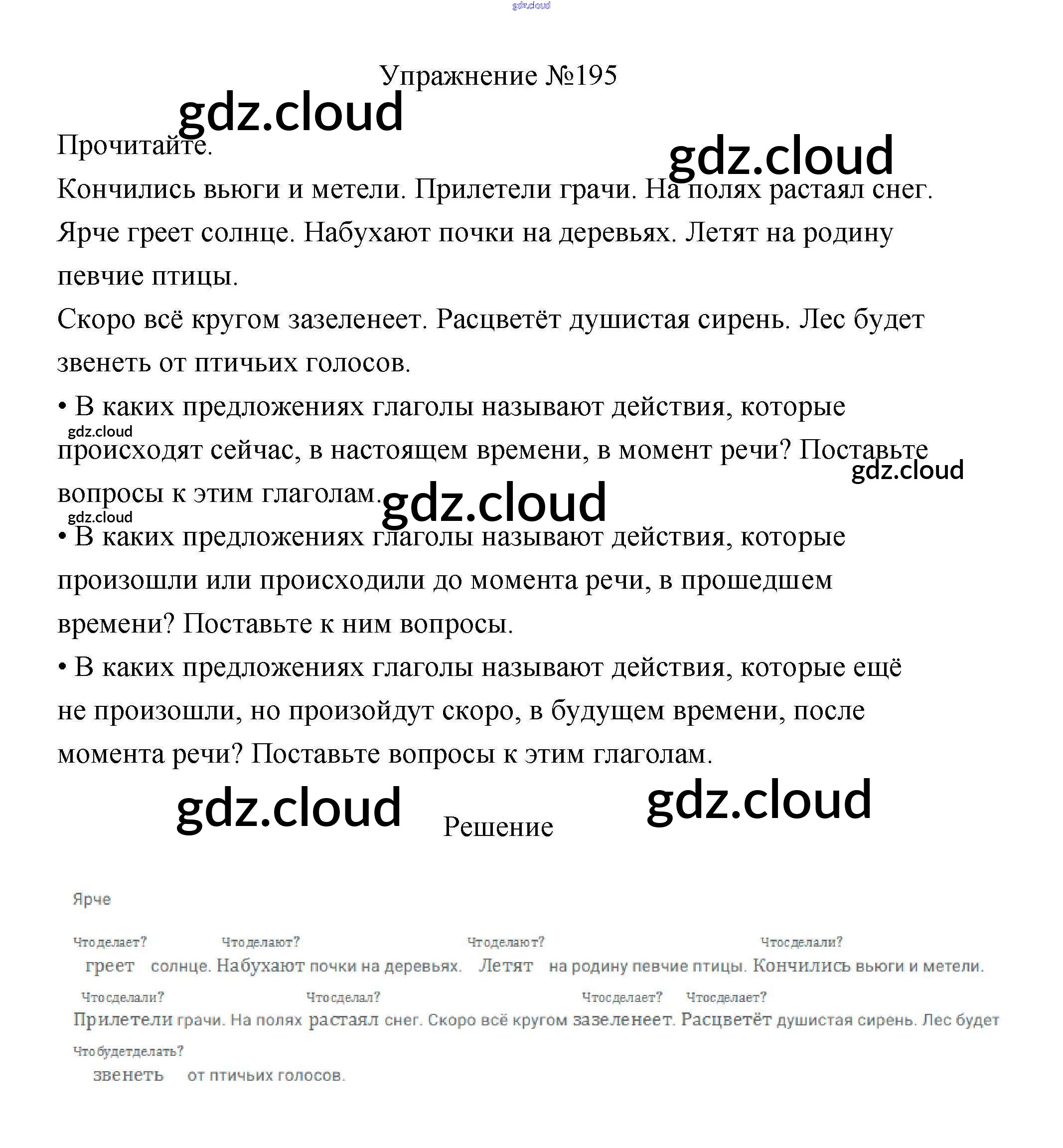 Ответ на задание 195 Учебник Русский язык за 3 (третий) класс Канакина, Горецкий Школа России 2013 Часть 1, 2