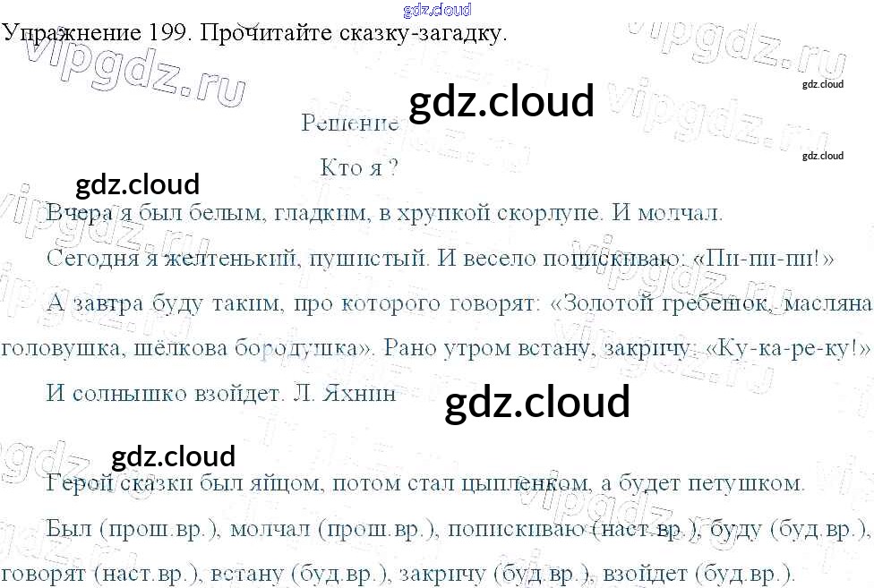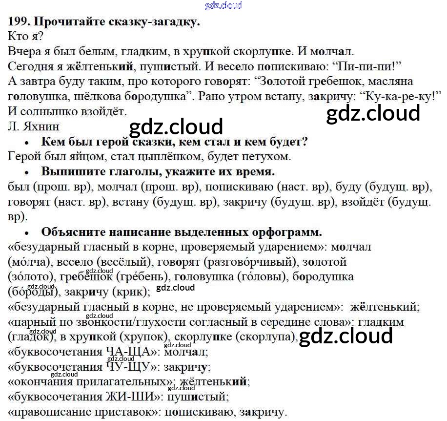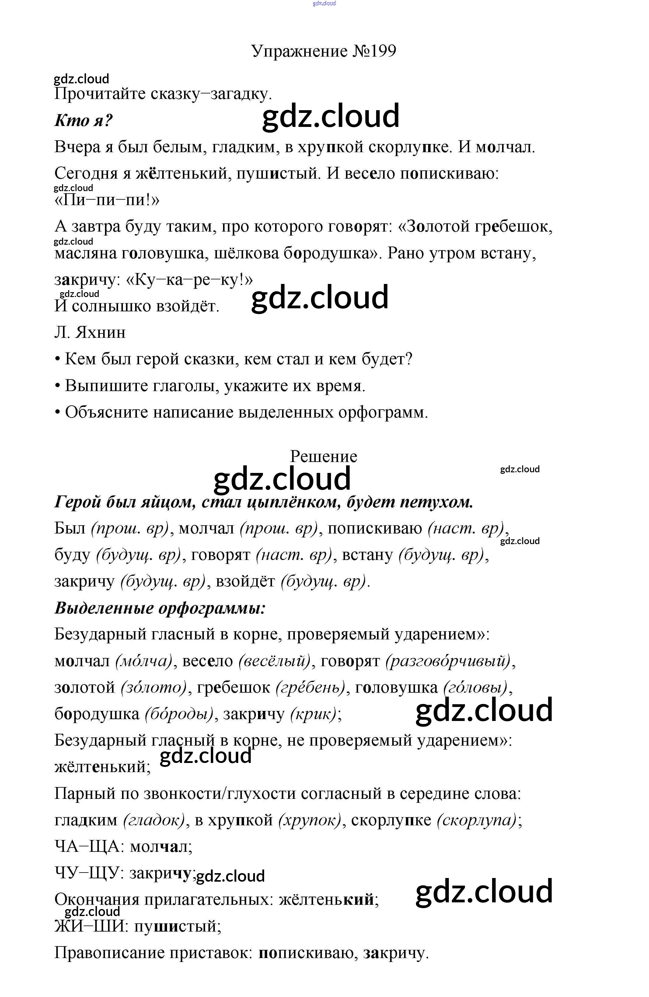 Ответ на задание 199 Учебник Русский язык за 3 (третий) класс Канакина, Горецкий Школа России 2013 Часть 1, 2