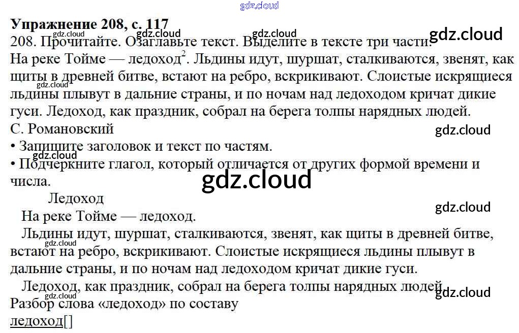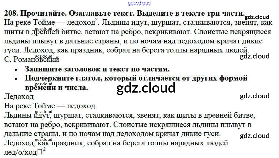 Ответ на задание 208 Учебник Русский язык за 3 (третий) класс Канакина, Горецкий Школа России 2013 Часть 1, 2