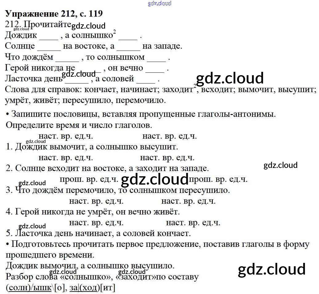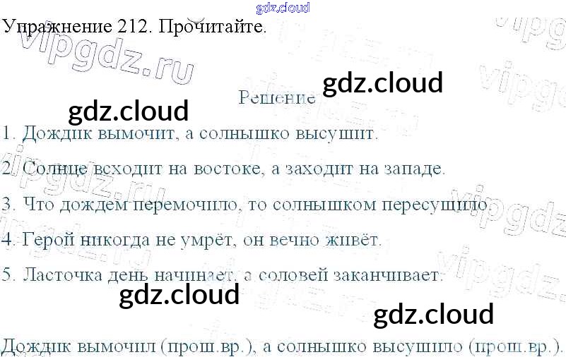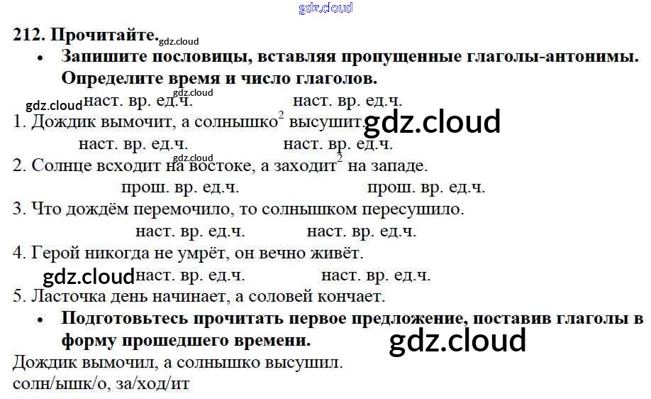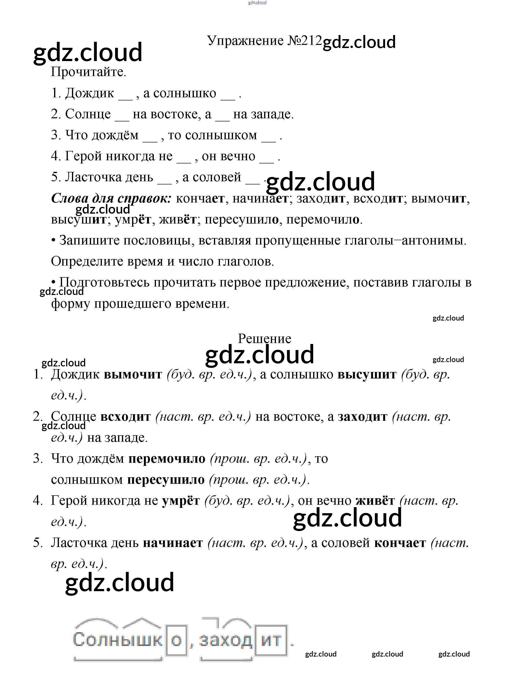 Ответ на задание 212 Учебник Русский язык за 3 (третий) класс Канакина, Горецкий Школа России 2013 Часть 1, 2