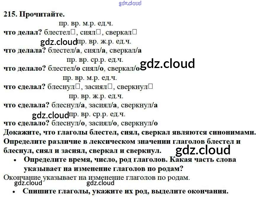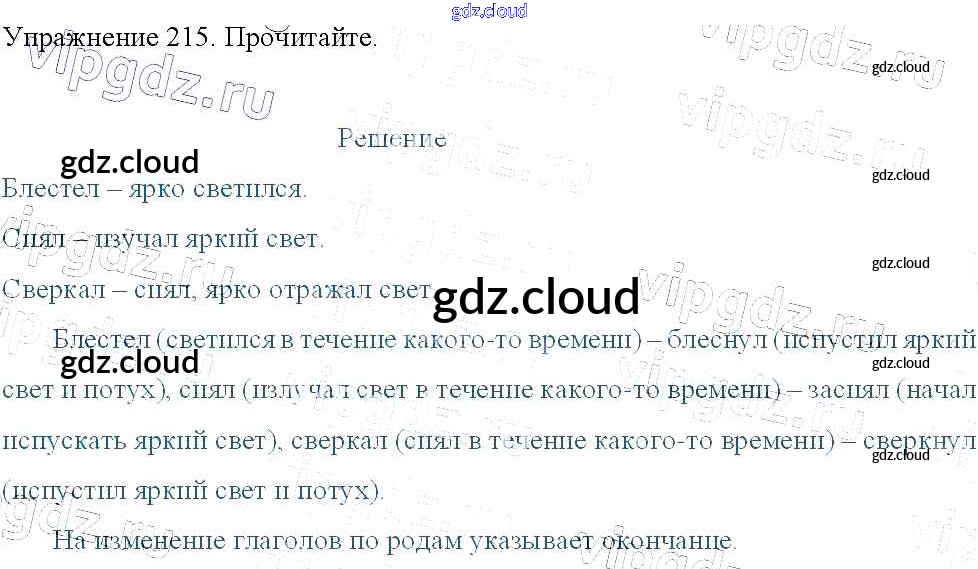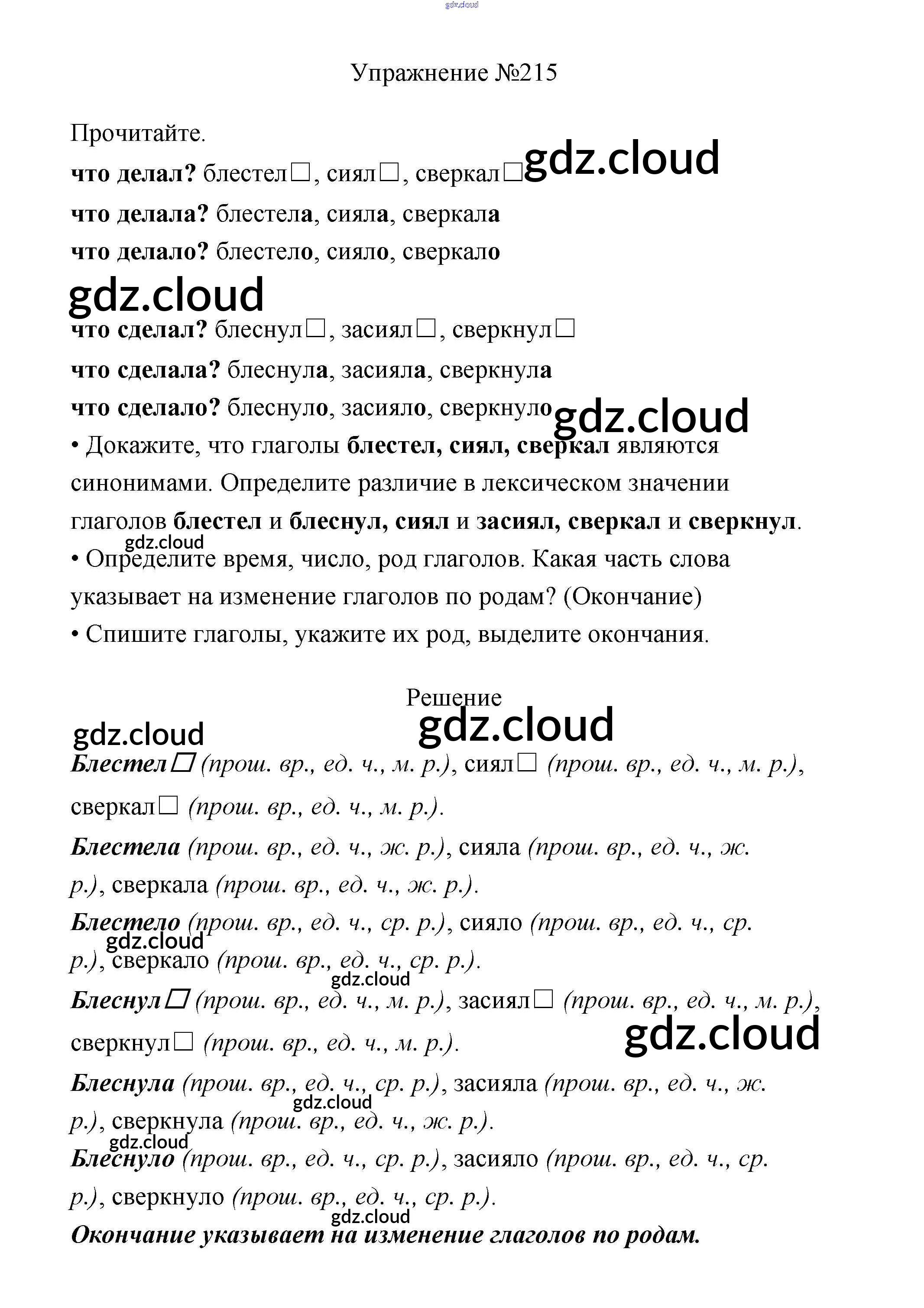Ответ на задание 215 Учебник Русский язык за 3 (третий) класс Канакина, Горецкий Школа России 2013 Часть 1, 2