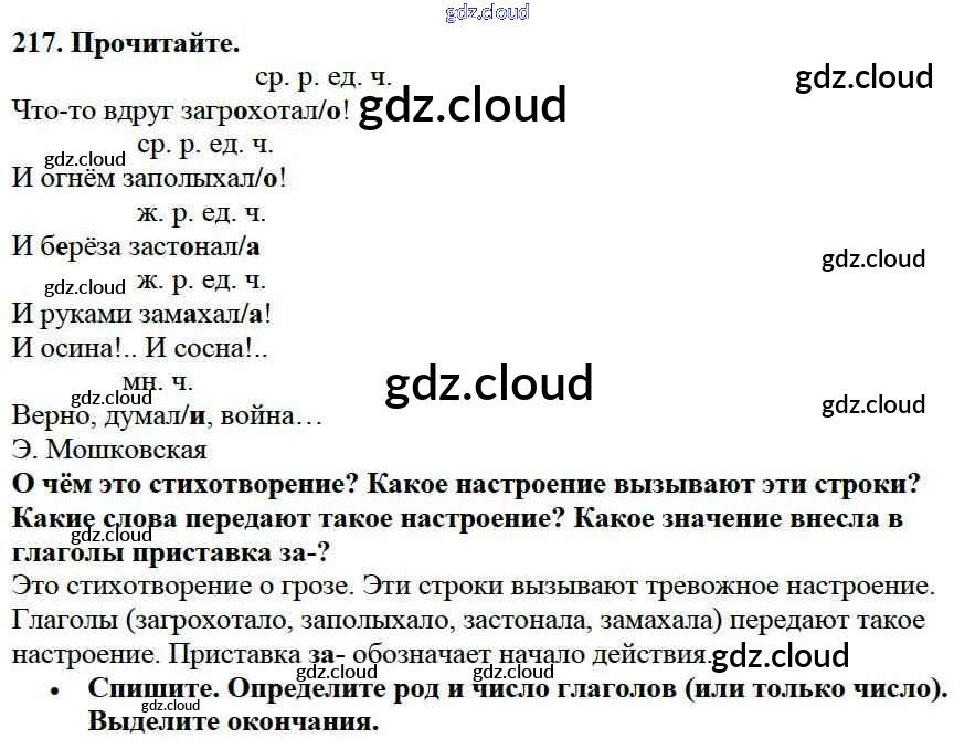 Ответ на задание 217 Учебник Русский язык за 3 (третий) класс Канакина, Горецкий Школа России 2013 Часть 1, 2