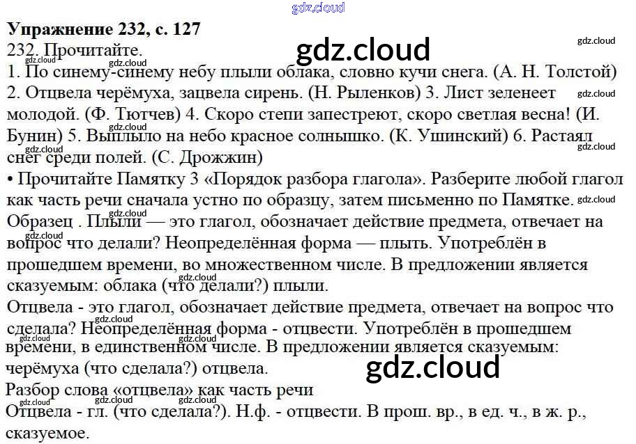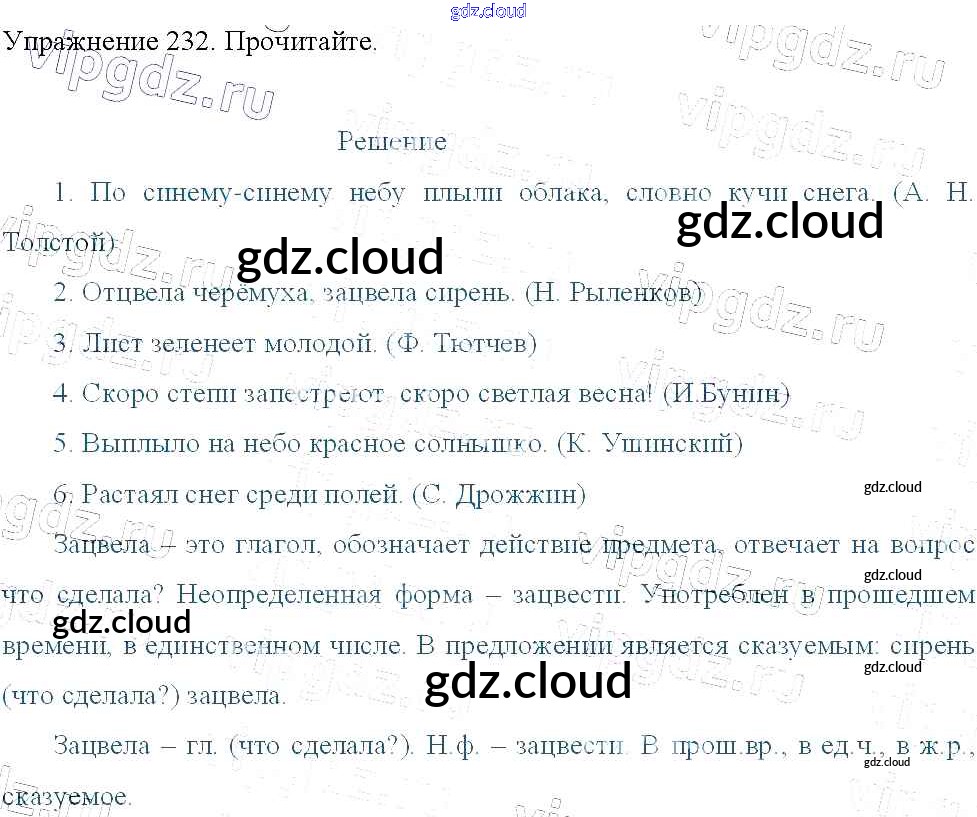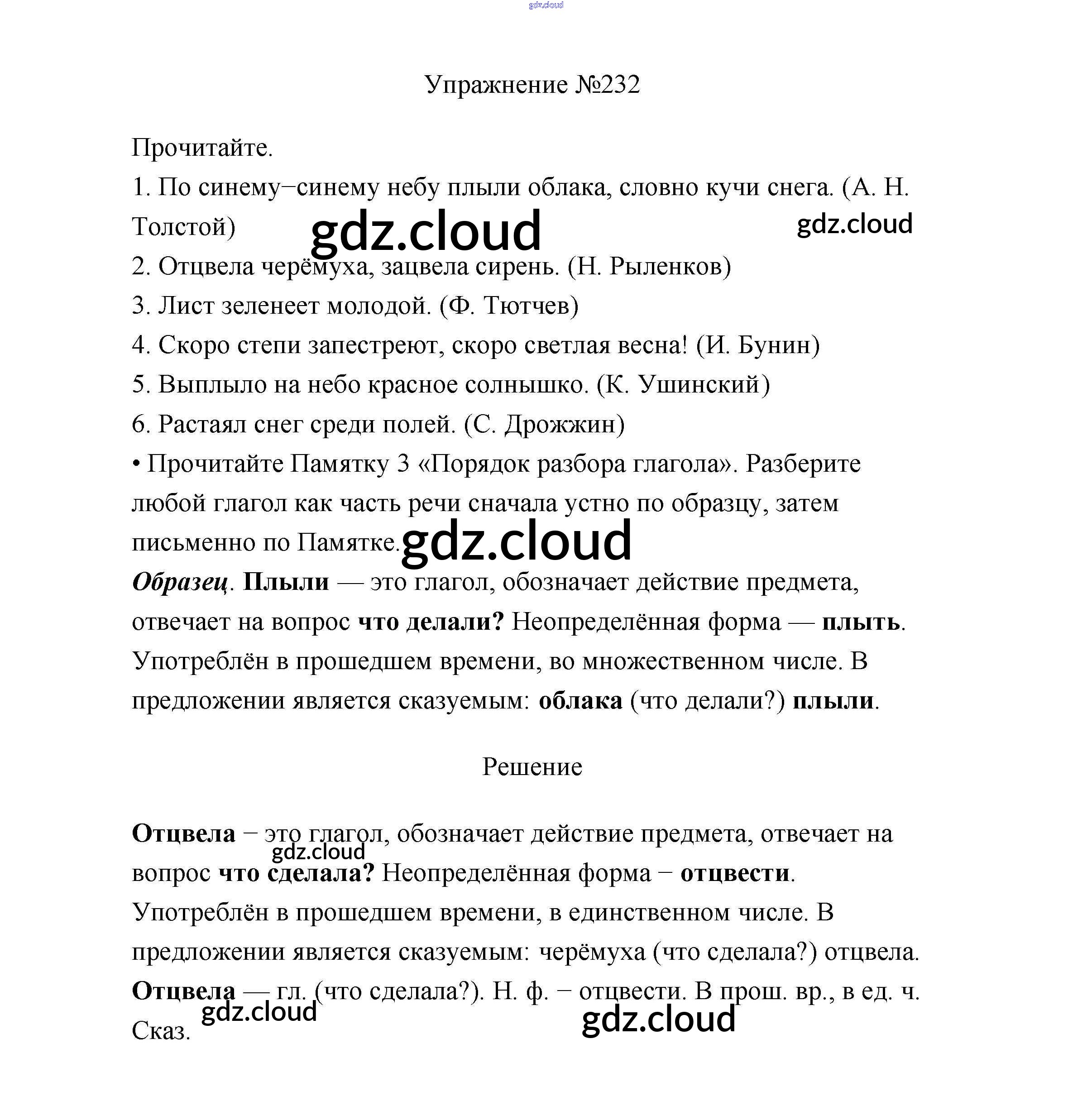 Ответ на задание 232 Учебник Русский язык за 3 (третий) класс Канакина, Горецкий Школа России 2013 Часть 1, 2