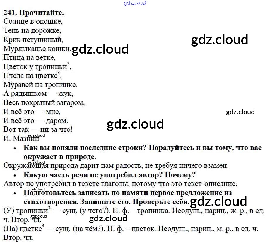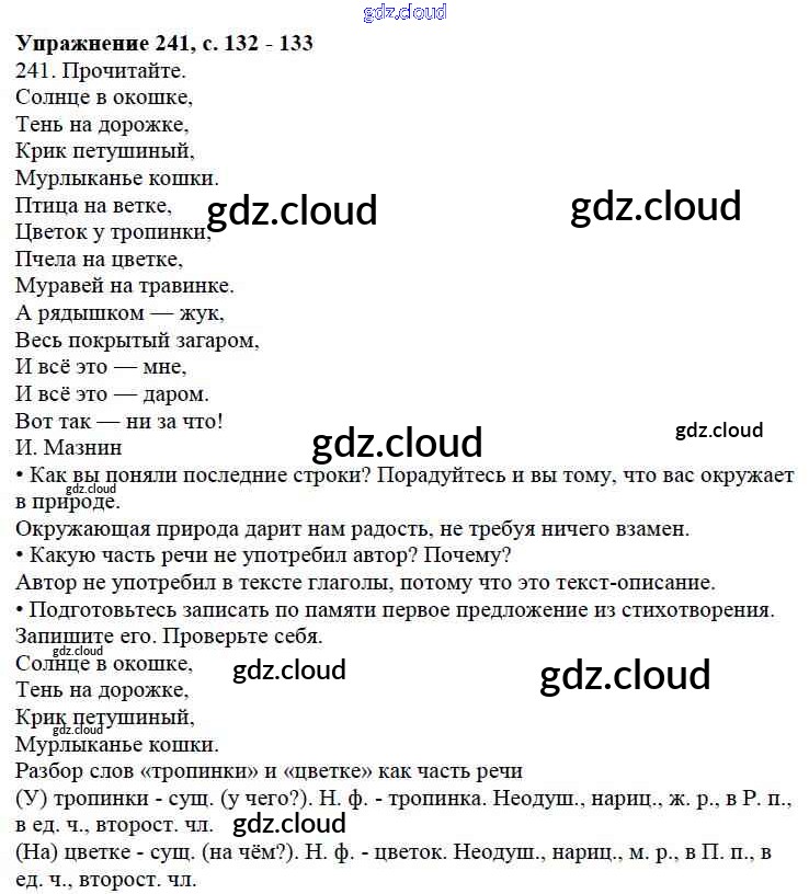 Ответ на задание 241 Учебник Русский язык за 3 (третий) класс Канакина, Горецкий Школа России 2013 Часть 1, 2