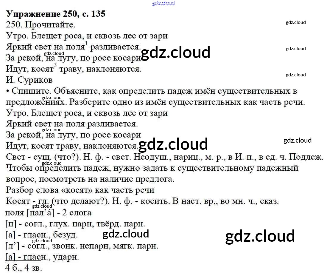 Ответ на задание 250 Учебник Русский язык за 3 (третий) класс Канакина, Горецкий Школа России 2013 Часть 1, 2