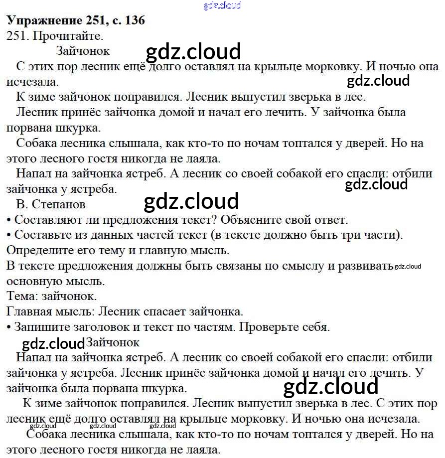 Ответ на задание 251 Учебник Русский язык за 3 (третий) класс Канакина, Горецкий Школа России 2013 Часть 1, 2