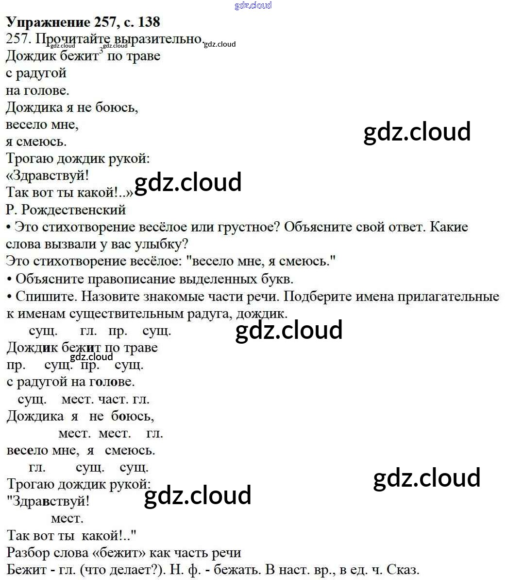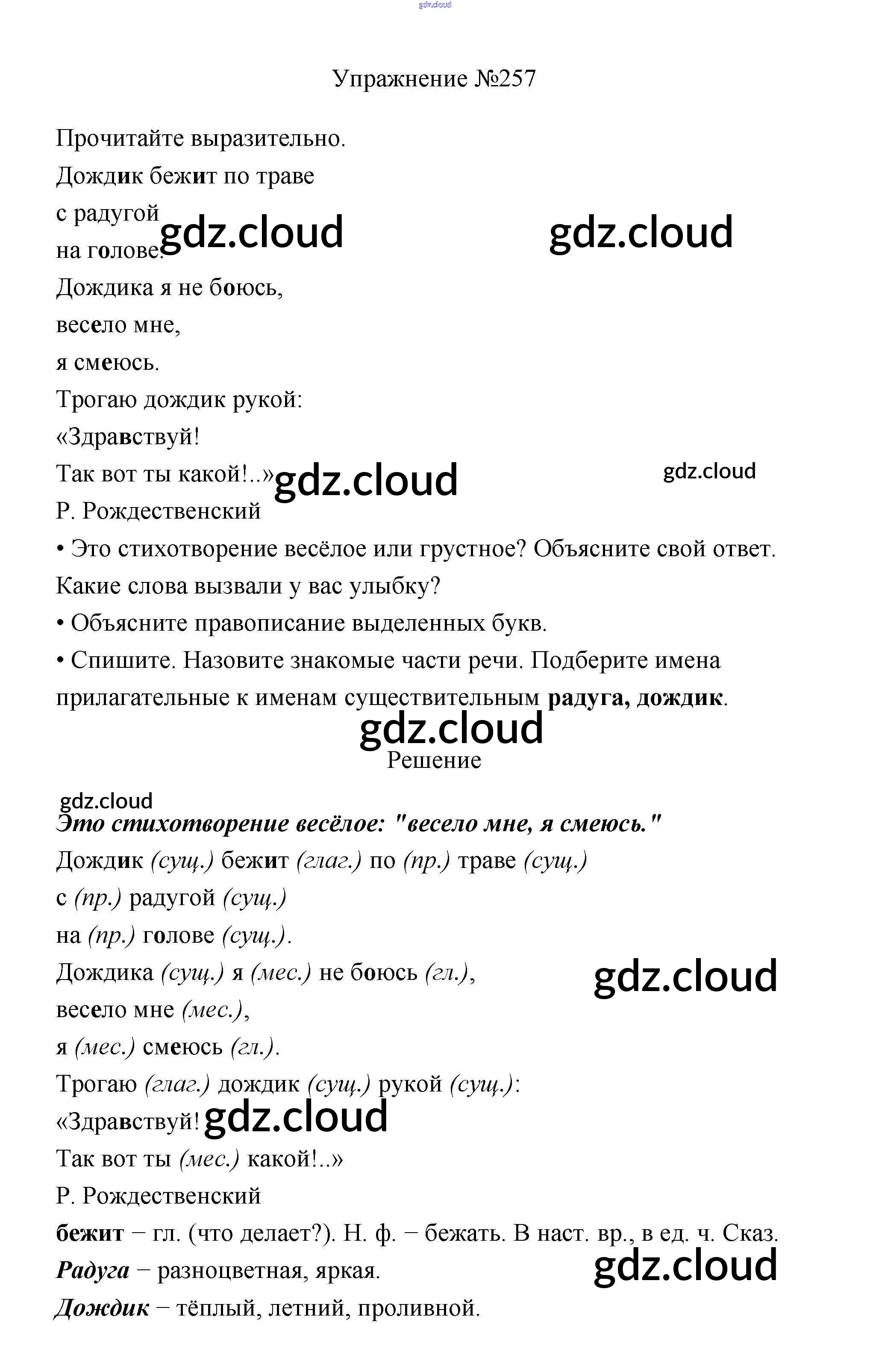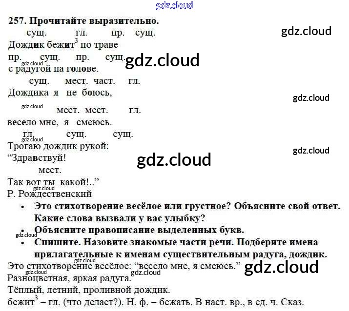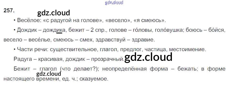 Ответ на задание 257 Учебник Русский язык за 3 (третий) класс Канакина, Горецкий Школа России 2013 Часть 1, 2