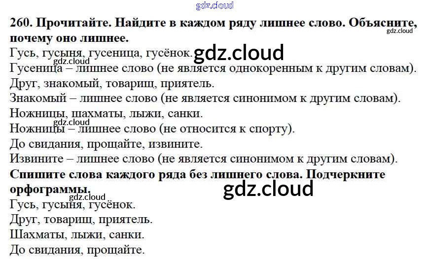 Ответ на задание 260 Учебник Русский язык за 3 (третий) класс Канакина, Горецкий Школа России 2013 Часть 1, 2